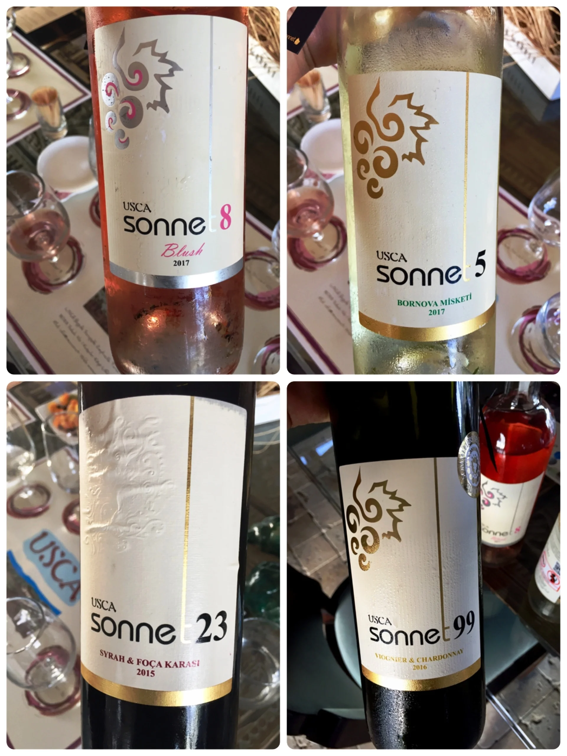 莊主命名酒款時匠心獨具,受到威廉莎士比亞William Sheakespeare十四行詩Sonnet啟發,每種葡萄酒都有一個表達它的十四行詩,並以詩的編號為酒名。 我們從USCA Sonnet 8 Blush 2017開始品酒,這款由Syrah釀製而成的葡萄酒具有紅色水果香氣,如草莓、覆盆子和櫻桃,均衡和新鮮的口感,酸度高,帶有水果香氣。 USCA Bornova Misketi Sonnet 5 2017,金黃色的葡萄酒具有花香,蜂蜜,玫瑰,杏子的香氣,令人難忘,葡萄酒新鮮,酸度中等偏高,後來我們有機會品嚐其他酒莊的Bornova Misketi,一分高下後,USCA的Bornova Misketi勝出! 還好離開酒莊時,提著半打Bornova Misketi回家,繼續品嚐Sonnet 5 的好。 Foça Karası是最古老的葡萄品種之一,很難得見到葡萄酒生產商欣賞這款葡萄。 USCA Syrah & Foça Karası 2015,從紫羅蘭和香料香氣開始,到新鮮的紅色和黑色森林漿果,是款平順且均衡的葡萄酒。 USCA Sonnet 76 2014 Reserve是80%赤霞珠和20%梅洛的混釀,在法國橡木桶中度過18個月,明顯呈現森林水果、香草等香氣、酒精濃度達14%,屬波多混釀方式,我想用莎士比亞十四行詩第76首來結束這篇文章,該是最好方法,透過詩來體會USCA酒莊想傳遞的感官訊息!