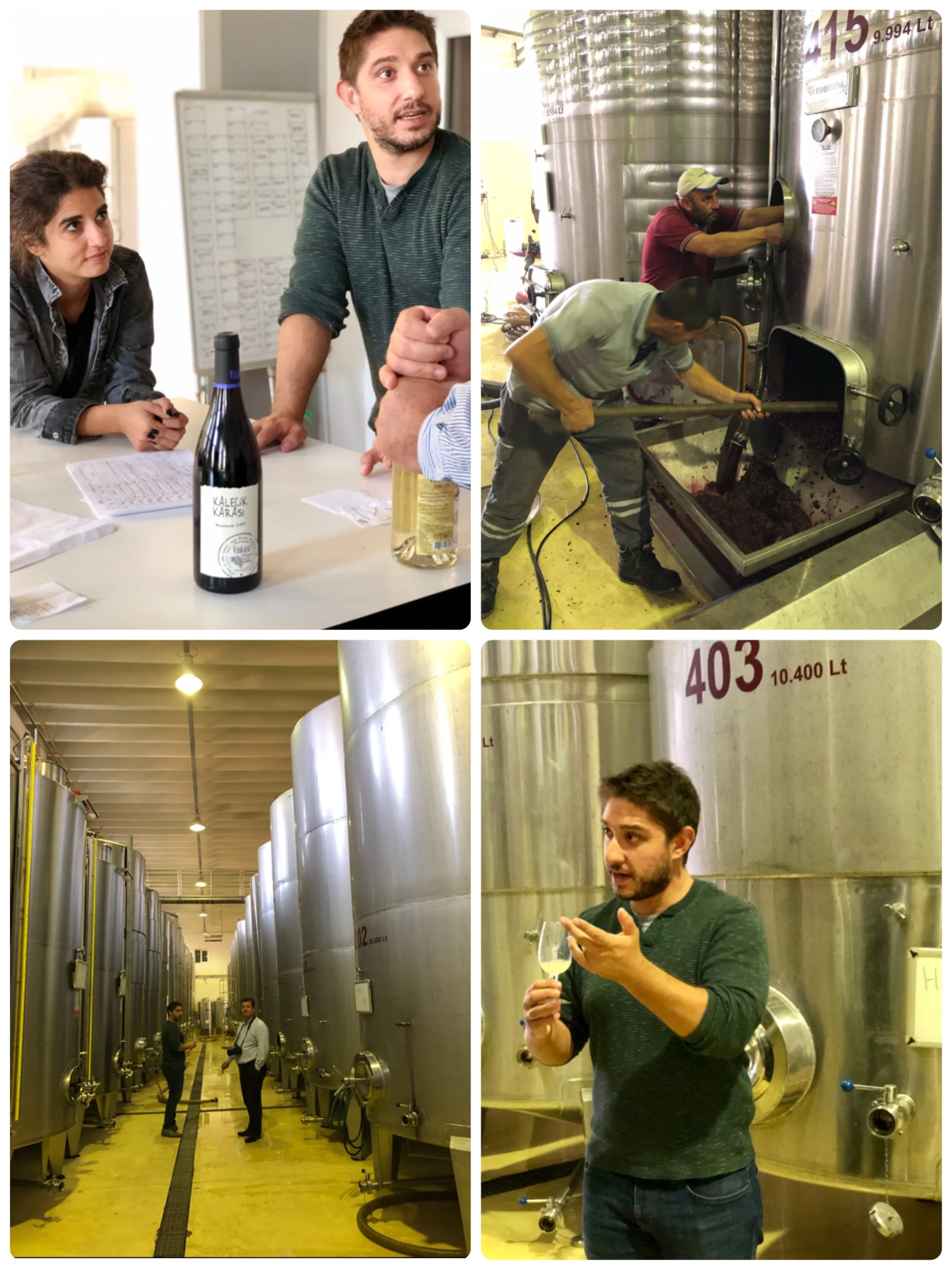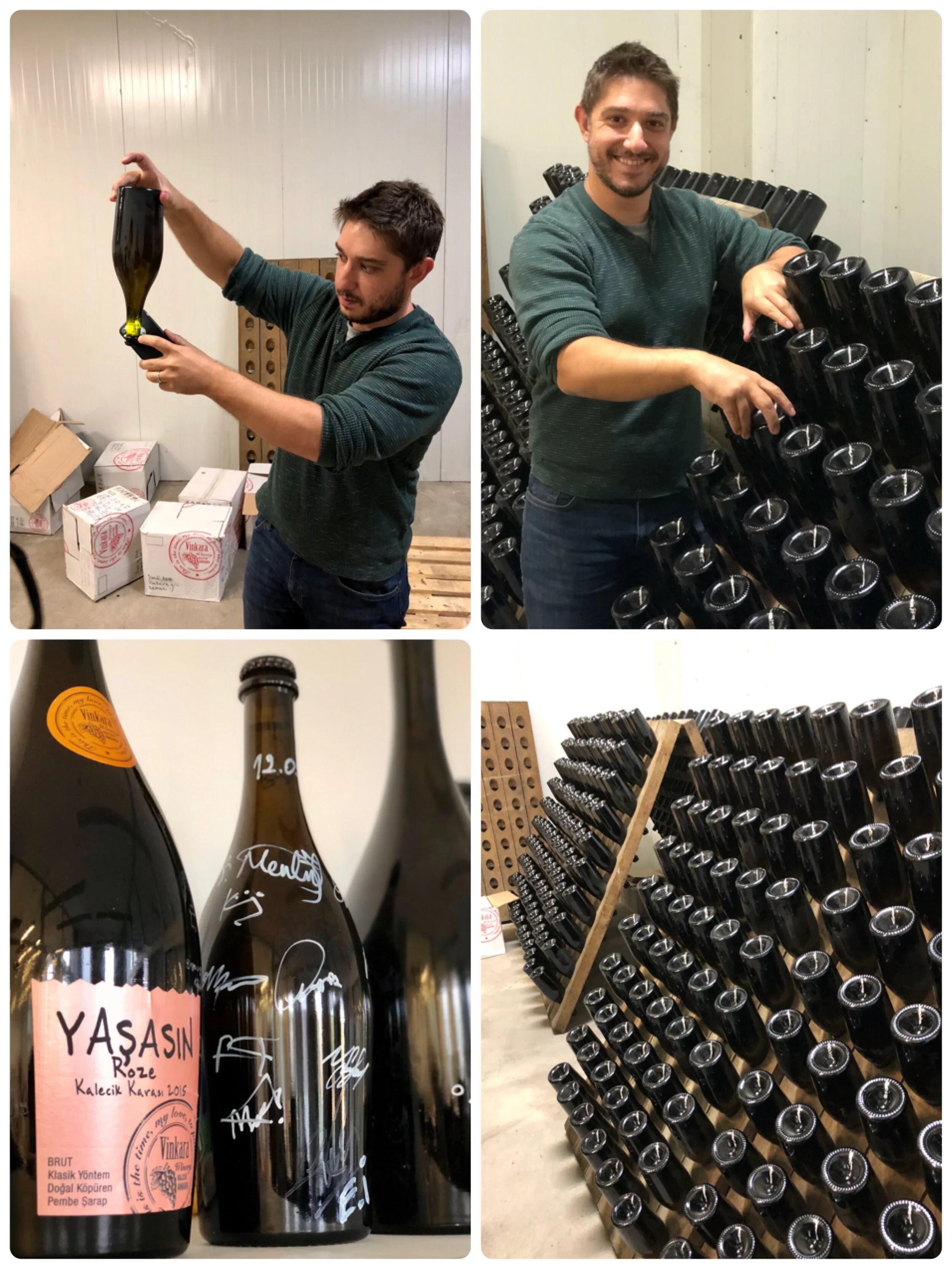 Kalecik葡萄園周圍的山脈海拔2,000米,提供極佳微氣候條件,濕潤的空氣在平原上升起,為葡萄園帶來降雨,這種氣候特徵與世界各地種植梅洛,赤霞珠和黑皮諾葡萄的地區相同。 葡萄園海拔約700米,確保山谷的夜晚涼爽,白天高溫與晚上低溫是決定葡萄品質的重要因素,葡萄以漸進而細緻的方式成熟,始能保有好酸度,沙質、粘土和石灰石的土壤結構,適合有效排水,飽含豐富的礦物質,很少進行噴灑農藥,以保持自然生態,Vinkara優越的地理位置和土壤,具備生產優質葡萄酒的條件。 走訪Vinkara正是秋收釀酒的時候,帥廠長Candas先生帶我們參觀葡萄園和酒廠設備,美麗如畫的葡萄園讓人印象深刻,酒廠內員工忙著處理早晨到達的葡萄,熱鬧極了。 我特別喜歡Kalecik Karası葡萄釀製的Yaşarsın氣泡酒,廠長說遵循傳統方式生產,定期專人轉動瓶子,讓氣泡更細緻口感更優雅,屬於香檳等級的製作方式,只可惜酒稅高,讓售價不親民。