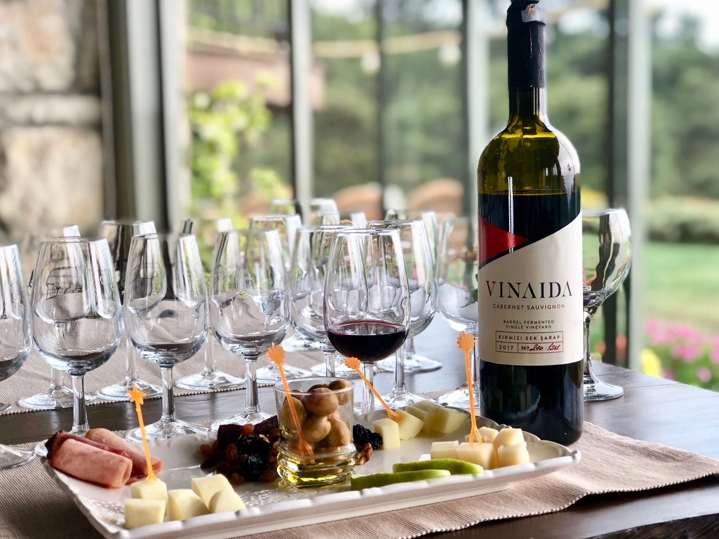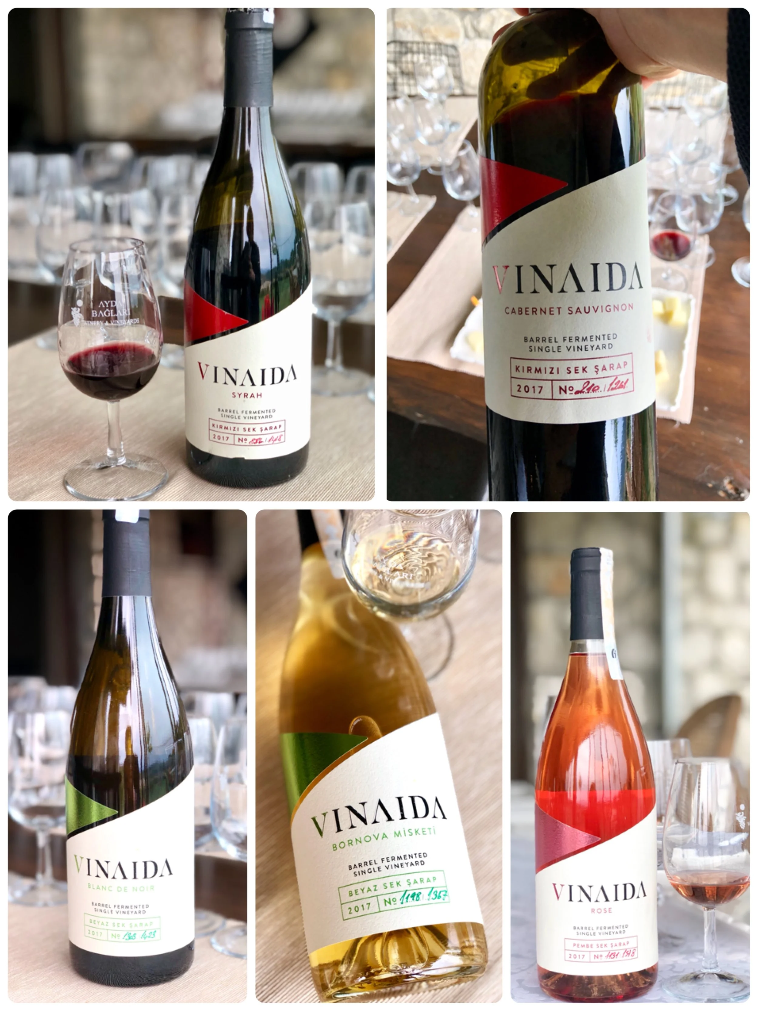 我們試飲五款Vinaida系列葡萄酒,Blanc de Noir 2017、 Bornova Misketi 2017、Rose 2018、Syrah 2017、Cabernet Sauvignon 2017。 Blanc de Noir 2017由Grenache海歌娜紅葡萄製作,當初栽種計畫內沒有適合白葡萄的緣故,在法國橡木桶中發酵9個月,但酒色清晰,呈美麗的金色,夏季水果、柑橘、白胡椒、奶油的香氣,好酸度。 Bornova Misketi 2017讓我完全顛覆對Bornova Misketi葡萄的印象,與Urla地區同酒款比較的話,花香果香較少,但酒體較強,多了水果乾的口感。 Rose 2018 由Pinot Noir-Grenache葡萄釀造,華麗且好酸度。 Syrah 2017經過9個月橡木桶發酵,清新的黑色水果香氣,帶著耐嚼的單寧與長尾韻,Cabernet Sauvignon 2017也同樣讓人印象深刻。