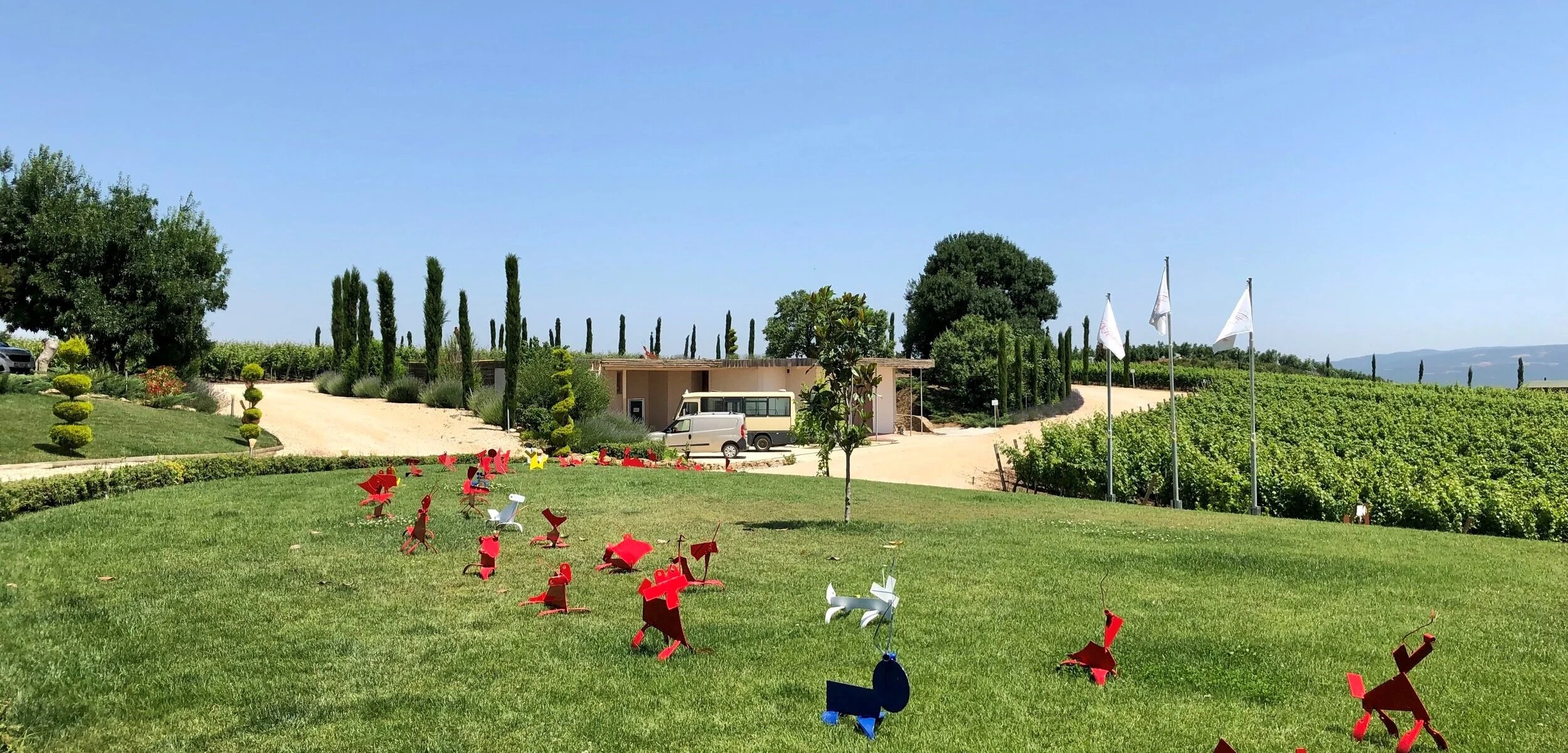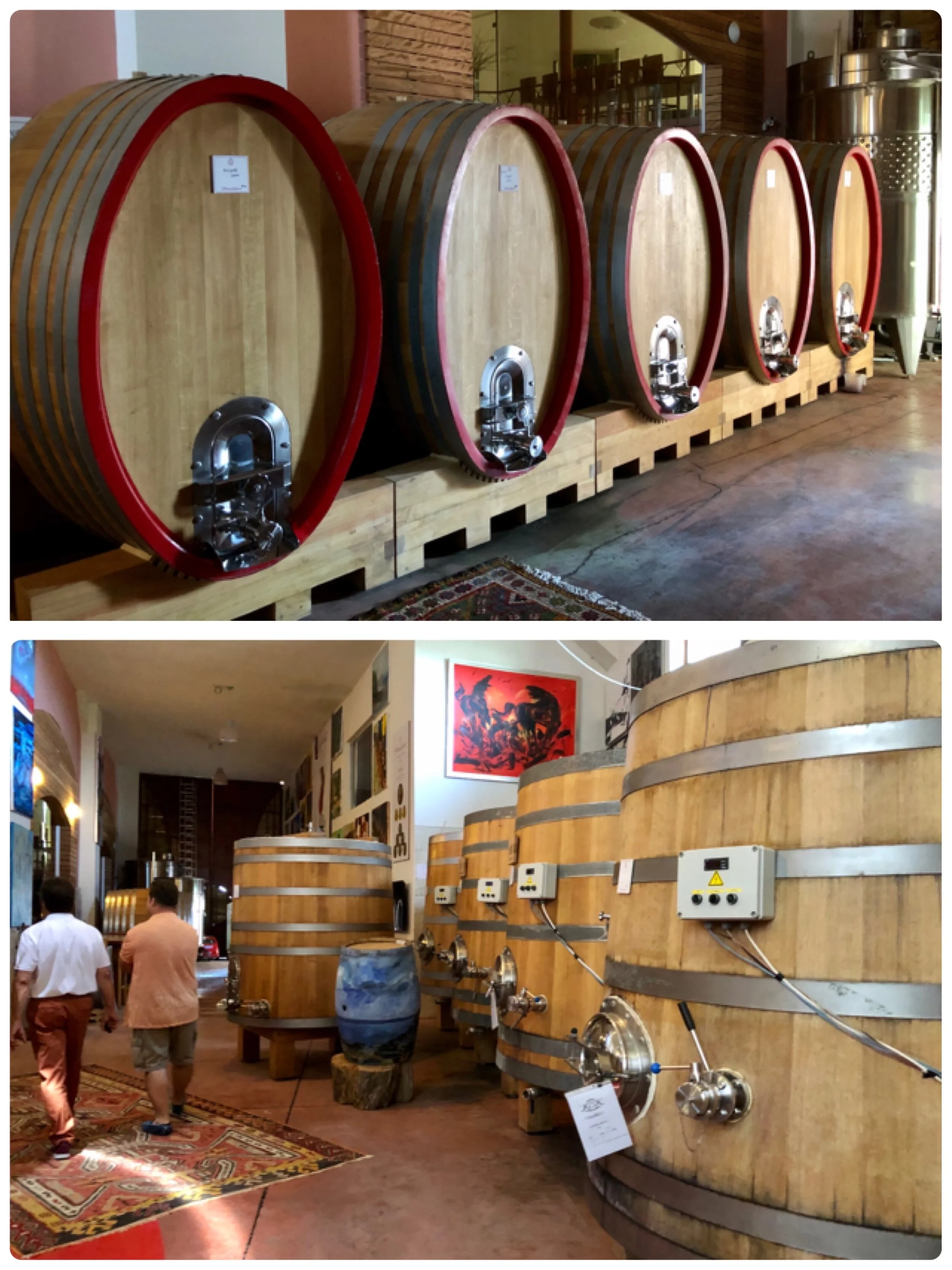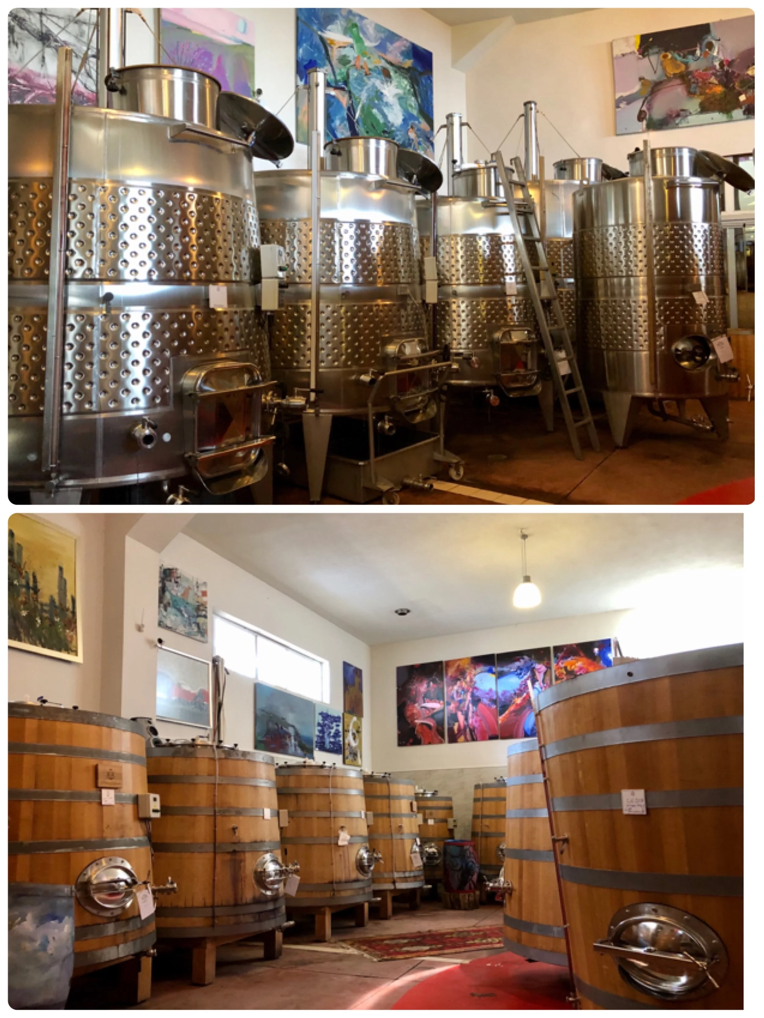 酒莊硬體設備優良,考慮重力系統,露台有帶蓋的管道設計,採收時將工具安裝在露台,葡萄通過管道降到下面的生產區域。 為了提升葡萄酒品質,清晨手工採摘,人工分揀葡萄,以實現”零綠色”葡萄目標。 葡萄重力掉落預留槽,進行2-5天冷浸,在溫度受控的橡木桶和水箱中,總發酵和浸軟持續25-35天,全程盡量手工處理。 老闆Bülent愛好藝術,釀酒廠內掛滿藝術畫作,地板放著各式地毯,讓昂貴的木製控溫釀酒桶看起更加不凡,走遍世界酒廠的我,第一次看到如此華麗的釀酒廠,完美酒窖與精美包裝葡萄酒就不在話下。