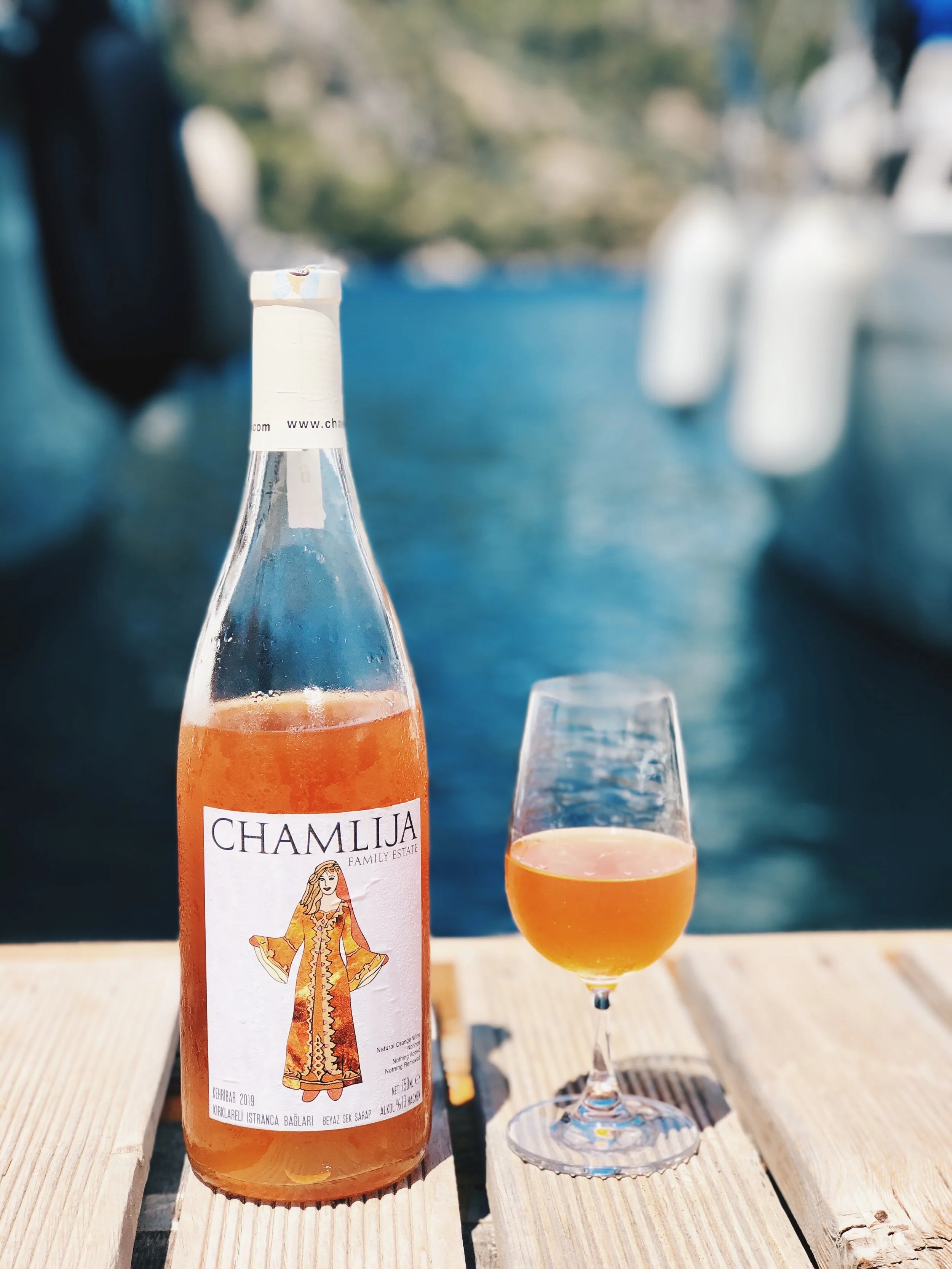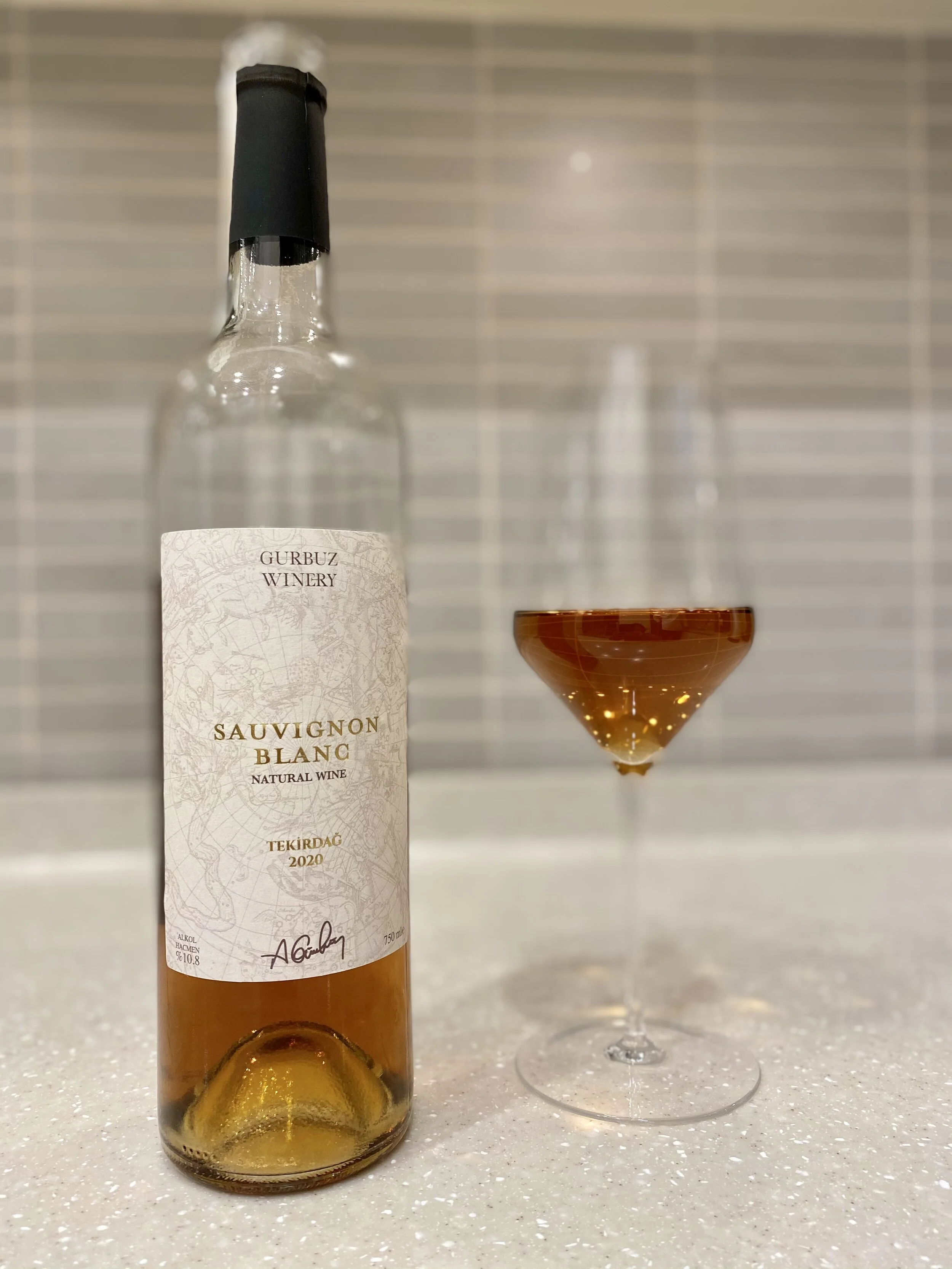 Gürbüz橘酒(自然酒) 2019酒評: Gürbüz酒農老闆Akin是位優秀釀酒師,他拿白蘇維濃葡萄表皮上野生酵母來發酵,葡萄酒部分過濾但不添加任何防腐劑,僅生產600瓶。 pH:3.88,TA:8.7 g / l,酒精濃度10.8%。 葡萄酒呈明亮琥珀色,杏仁、烤榛果和略帶氧化的香氣,無花果果醬、杏乾和堅果口感。 一款平衡複雜而充滿活力的葡萄酒,酒體堅實,酸度令人垂涎,單寧優雅,帶礦物質味的長尾韻。 好像在喝雪利酒,也讓我想起乾枯的蘇打水,可以搭配羊乳乾酪或是有醬汁的亞洲菜餚。