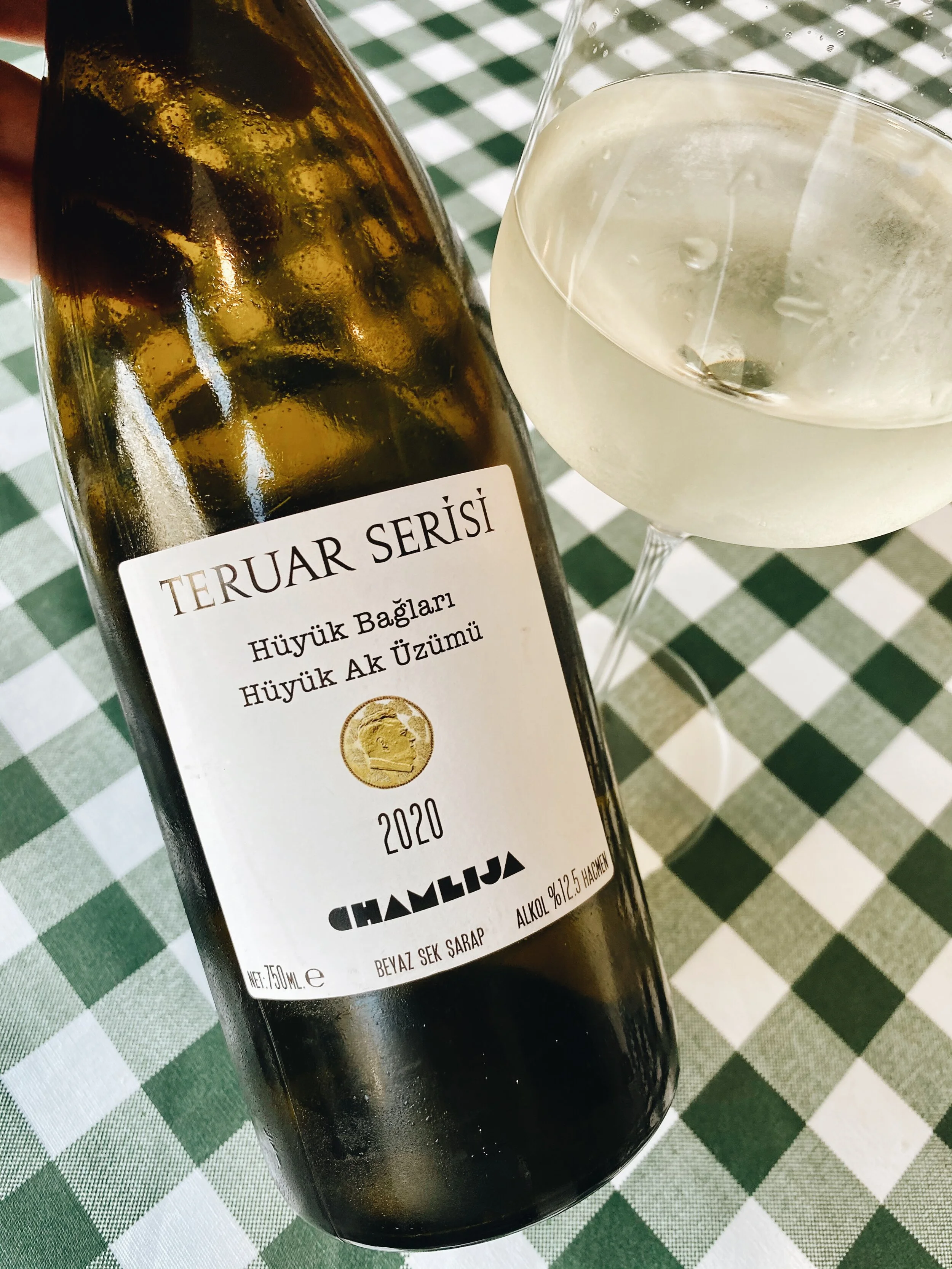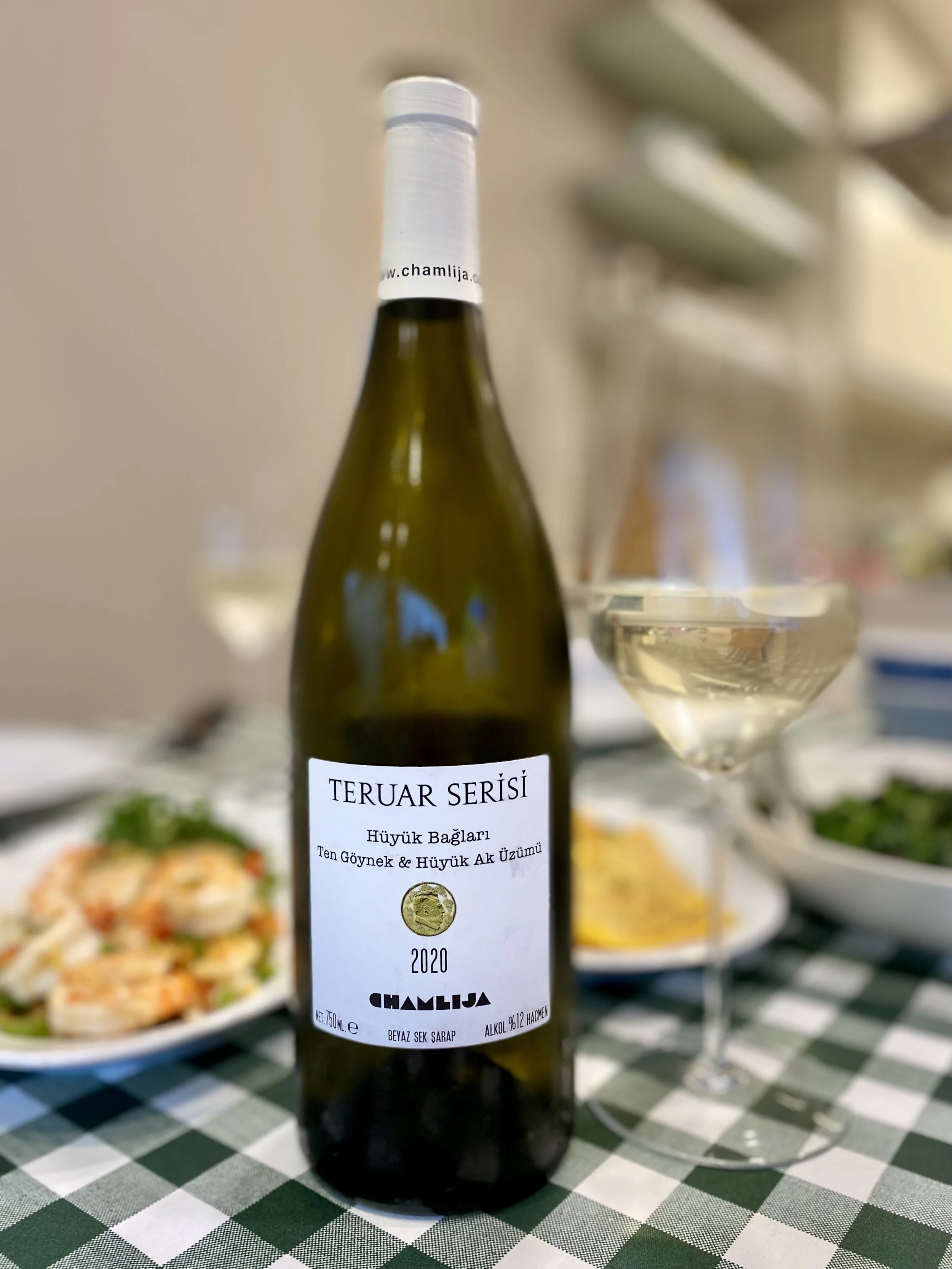 Chamlija Terruar Serisi Ten Göynek ve Hüyük Ak Üzümü 2020: 80% Ten Göynek葡萄和20% Hüyük白葡萄混釀,葡萄汁在鋼製桶中靜置後,經過低壓碳冰處理,在鋼桶內存放4個月,進行有限過濾,生產2000瓶, pH:3.0,酒精濃度12%。 淡檸檬色,低溫品飲時,有著葡萄柚、檸檬、酸橙、金銀花香氣,酒溫度慢慢增加時,可品嚐到油桃和桃子的香氣分層結構,好的礦物質結構,高酸度。 當地風土有著高硫土壤結構,老藤產量極低,葡萄園位於1200米海拔高度,於是產出高酸度、低蘋果酸含量、豐富礦物質結構,增添果實結構和集中度,是款令人印象深刻的葡萄酒。 由於它的高礦物質度,建議10至12度品飲溫度。
