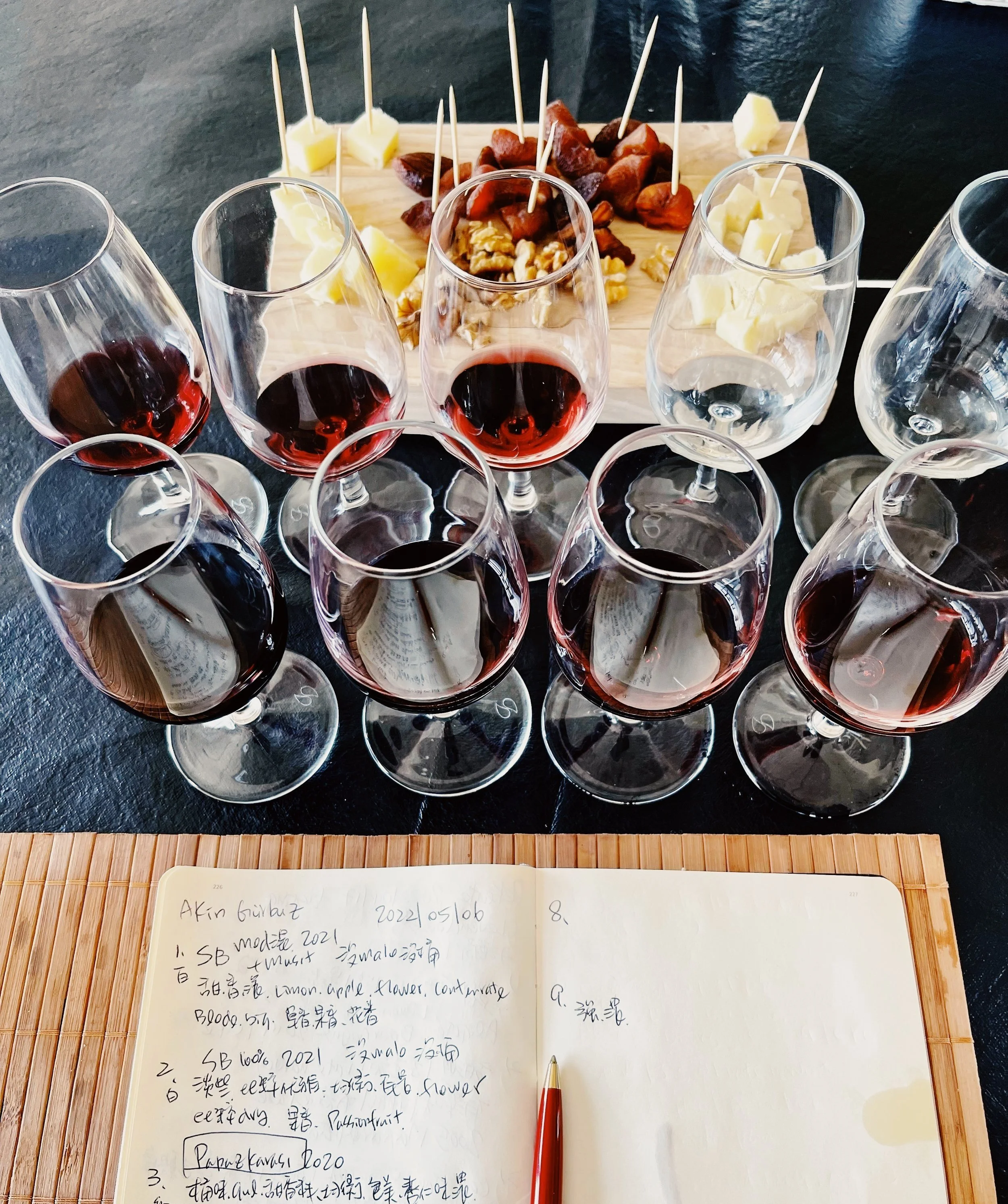 Akın爸爸有小面積葡萄園,自幼以釀葡萄酒為志,青年時期去美國加州大學唸釀酒學,畢業後在美國和澳洲酒莊工作,學經歷搞定後回土耳其釀自己的葡萄酒。 他的酒風獨到,唯一缺點就是葡萄園不足,有些葡萄必須外購,碰到葡萄供應農拿翹,必須面對品質不穩定問題,儘管如此,Akın葡萄酒還算有一定水準。 我們品嘗2款2021年份白葡萄酒、7款2020年紅葡萄酒,整體而言品質比去年好。 第一次釀製的黑牧師葡萄酒,讓我印象深刻,圓潤飽滿香氣濃郁,值得買半打放酒窖陳放,這次拜訪收穫滿滿!
