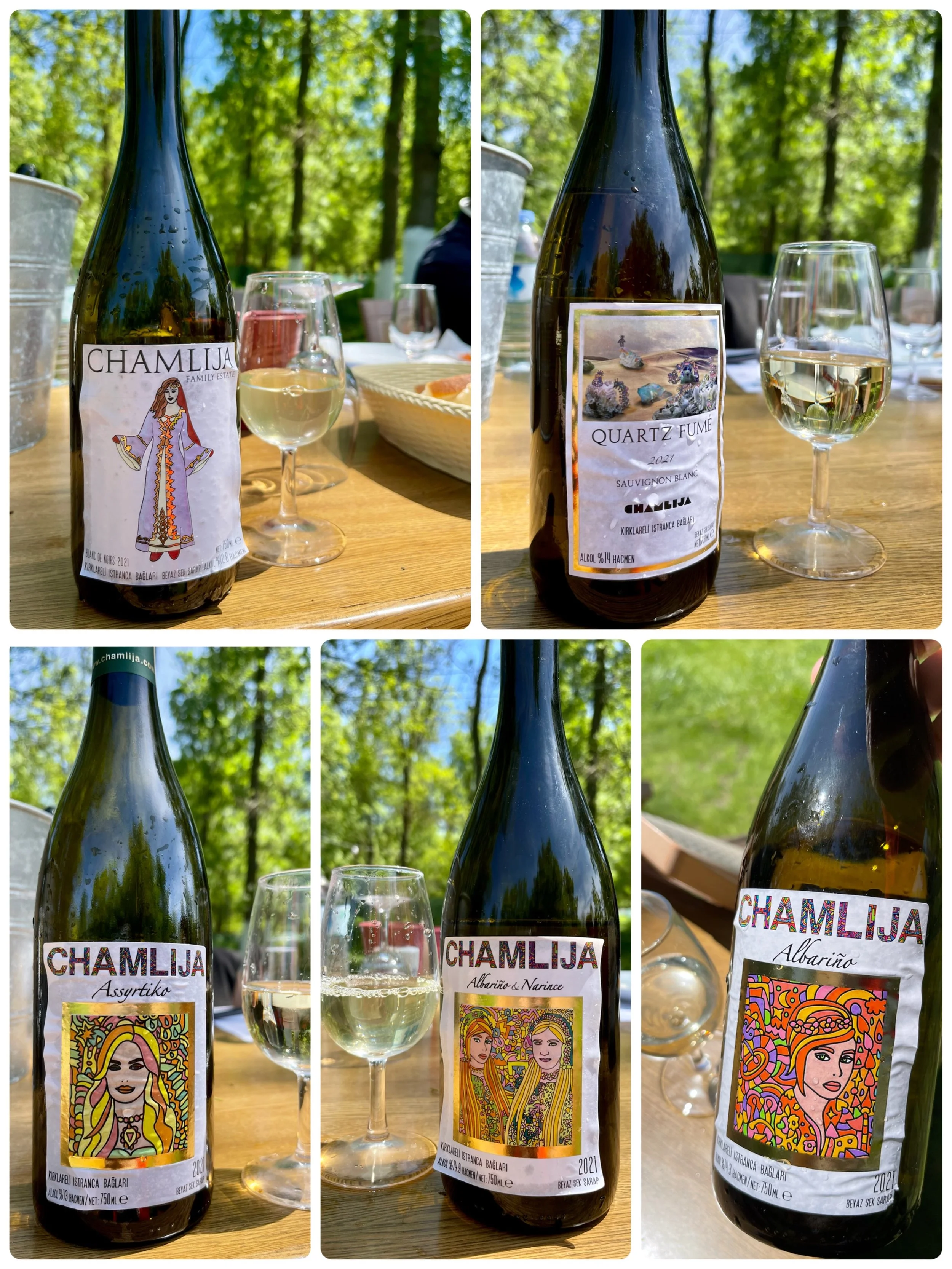 莊主Mustafa喜歡在Camli餐廳花園舉辦品飲,餐點總是綠沙拉和烤肉二道,大概他認為留點肚子喝葡萄酒比較重要吧! 這次他還邀請其他朋友一起品飲,整個輕鬆悠閒,讓我更加放鬆專注酒變化。 由5款白葡萄酒開場,它們是: Blanc de Noirs /Papazkarasi 2021、Assyotiko 2021、Quartz Fume 2021、Albariho, Narince 2021、Albariho 2021。 Chamlija葡萄園在2021年碰到乾旱,葡萄變得濃縮,讓5款白葡萄酒更加濃郁,加上Chamlija一貫好酸度與新鮮口感,品飲起來好愉悅。 我對單價最低的Blanc de Noirs /Papazkarasi 2021印象深刻,本來就喜愛土耳其原生葡萄Papaskarasi黑牧師,它跟黑皮諾類似,嬌貴難養,紅葡萄拿來釀製白葡萄酒也很出色,複雜香氣伴隨核果和異國水果味道,富含礦物質口感,酒體結構好,不想花大錢喝好酒的話,它就是首選。