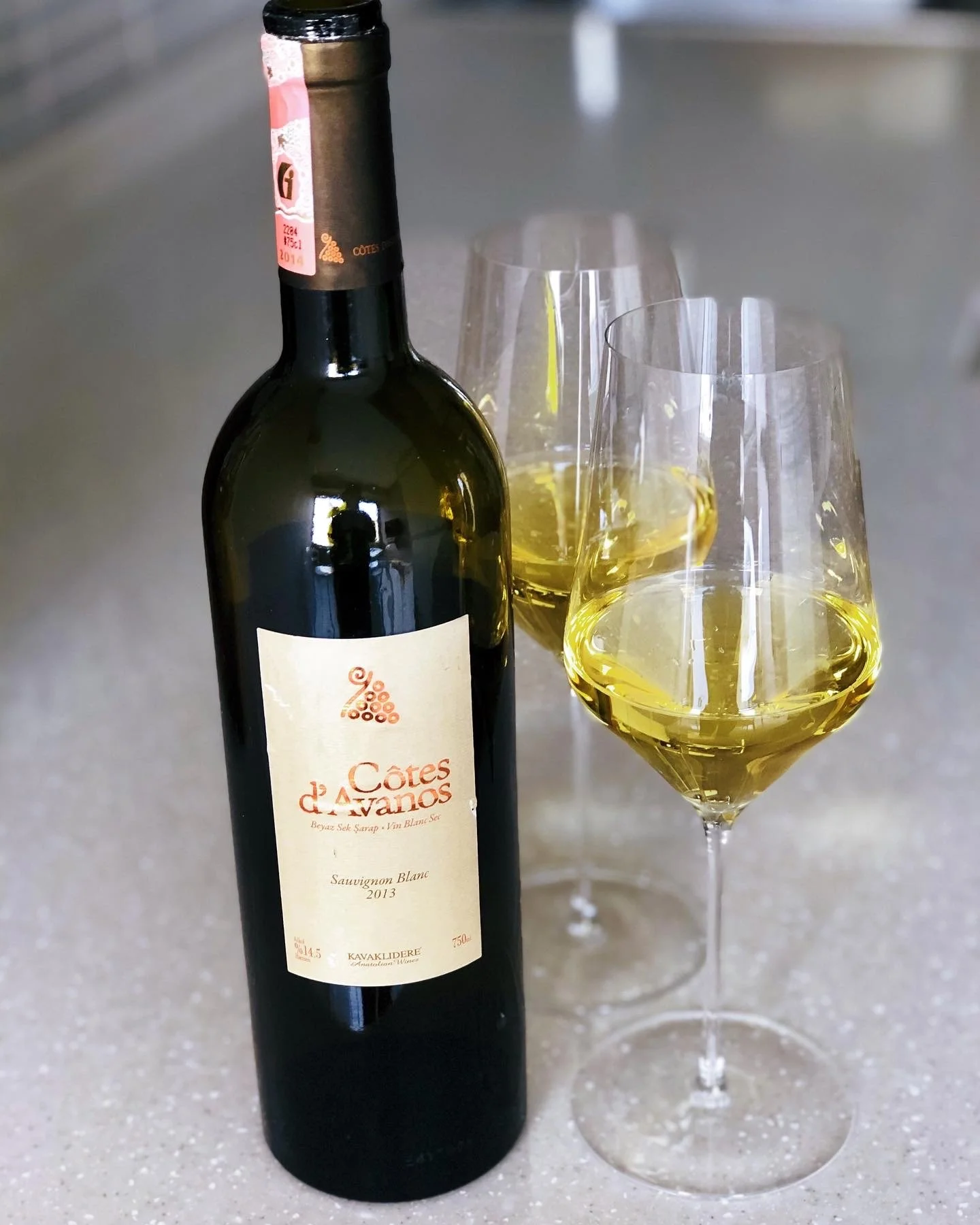 【Kavaklidere Cotes d'Avanos Sauvignon Blanc 2013年份酒評】 葡萄來自卡帕多其亞Cotes d’Avanos葡萄園,石灰岩土壤,海拔950米,收成時夜間採收,使用Sur lie技術釀酒,無過桶,有限制過濾。 酒精含量為14.5%。 葡萄酒呈美麗的金黃色,帶著橙皮、檸檬、梨和青蘋果的香氣。 中等酒體,高酸且富咬勁的結構,令人愉悅的口感。 我們在2020年打開它,有高酸度加持,可以在酒窖內再陳放2-3年。 過了7年的白蘇維濃,香氣口感仍有水準,是少見的土耳其白葡萄酒。