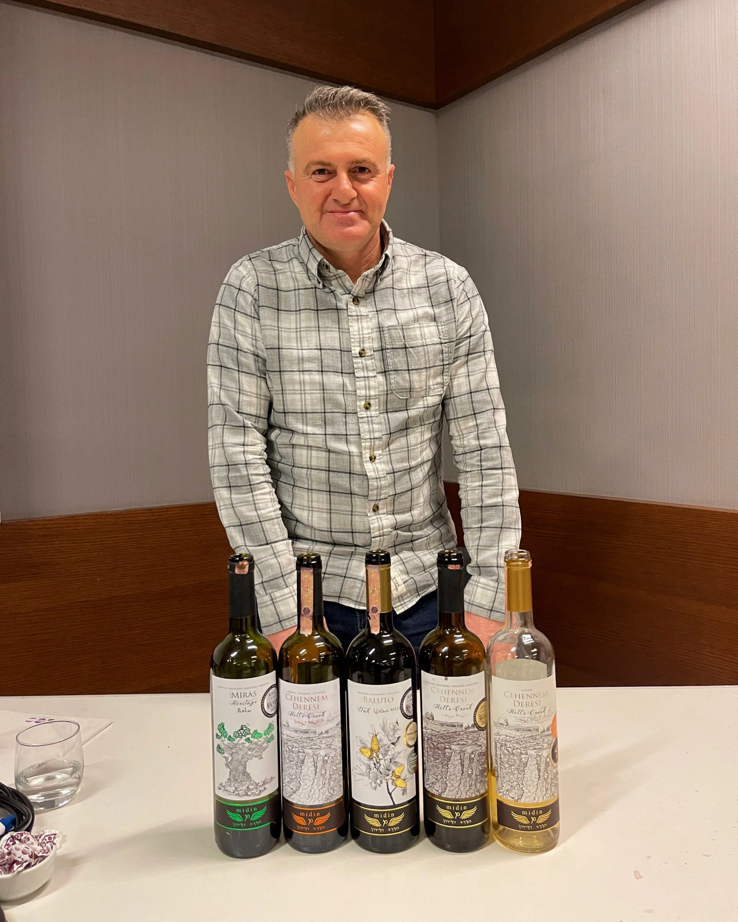 琳瑯滿目的原生葡萄品種是Midin葡萄酒特色,葡萄的多樣性反映Midin土壤肥沃,這裡有1千多英畝的葡萄園,和50多種紅白葡萄,既可食用也可釀造葡萄酒。 Midin葡萄園不使用農業化學肥料,葡萄在自然週期中成熟,這裡晝夜溫差很大,讓葡萄酸度和香氣產生。 近10年裡,幾乎所有的葡萄栽種變成有機的,因為大多數人不使用化學品,堅持種植天然葡萄栽種。 村裡最重要的白葡萄是 Karkuş、Mazrona 和 Bilbızeki,釀造紅葡萄酒的葡萄有:Gavdoni、Raşegurnık(黑串)、Kittilnafs(呼吸)、Mazronakomo(黑馬茲羅納)、Msabık、Öküzgözü(牛眼)和Boğazkere。 除了 Öküzgözü 和 Boğazkere 之外,Kittilnafs 葡萄是用騾子,從 1600-1700 海拔的 Uludere 和 Cudi 山朝南山坡收集的,好難想像當中的辛勞,葡萄酒呈紅寶石紅色,果味豐富,中度渾濁,中度酸度,顆粒柔和,優雅而平衡。 Raşegurnık 葡萄呈球形,中粒至大粒,顏色為黑色,葡萄從老藤上採收,現在試圖通過新種植法來維持其活力;Mazrona葡萄最適合釀造優質葡萄酒和糖蜜, 10 月底成熟,直到那時它才能達到 23-24 白利糖度,葡萄酒顏色呈深金色,它的果皮很薄所以適合食用;Gavdoni葡萄是大橢圓形紫色的,非常多汁且皮厚,在土耳其文意為“剝皮”,是教堂喜愛的葡萄。 Karkuş在庫爾德語裡意為“驢殺手”,Karkuş葡萄酒自古以來就被釀造,與其他葡萄相比,它成熟得早(9月15日至20日),其含糖量增加得非常快,具有很高的白利糖度值,含一種白色單寧,非常甜,釀出的葡萄酒有單寧,顏色呈琥珀色的。 Bilbizeki葡萄適合鮮食也適合釀造葡萄酒,葡萄不多汁,屬於最早成熟型葡萄,每年八月底可採收,葡萄酒顏色是淺黃色,跟Karkuş葡萄酒一樣,Midin是第一個生產Bilbizeki葡萄酒的酒莊。