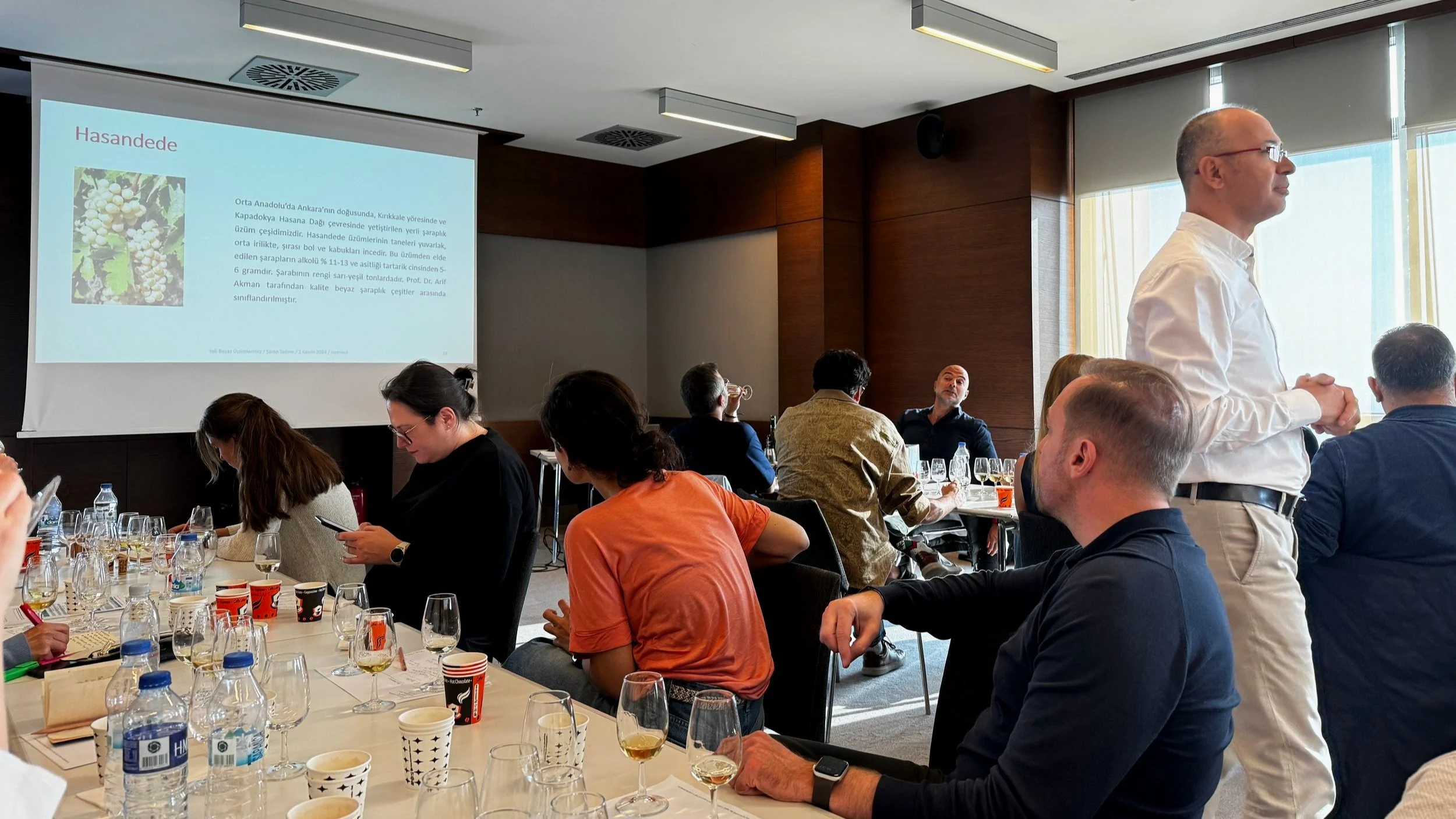 參加土耳其葡萄酒專家協會講習活動,這次會長安排”土耳其原生白葡萄介紹”主題,邀請來自Çukurova大學食品科學技術系的Turgut Cabaroğlu教授負責解說,盡責的教授準備充分,總共介紹14種土耳其原生白葡萄,搭配18酒款讓大家體驗風味,受益匪淺啊!
