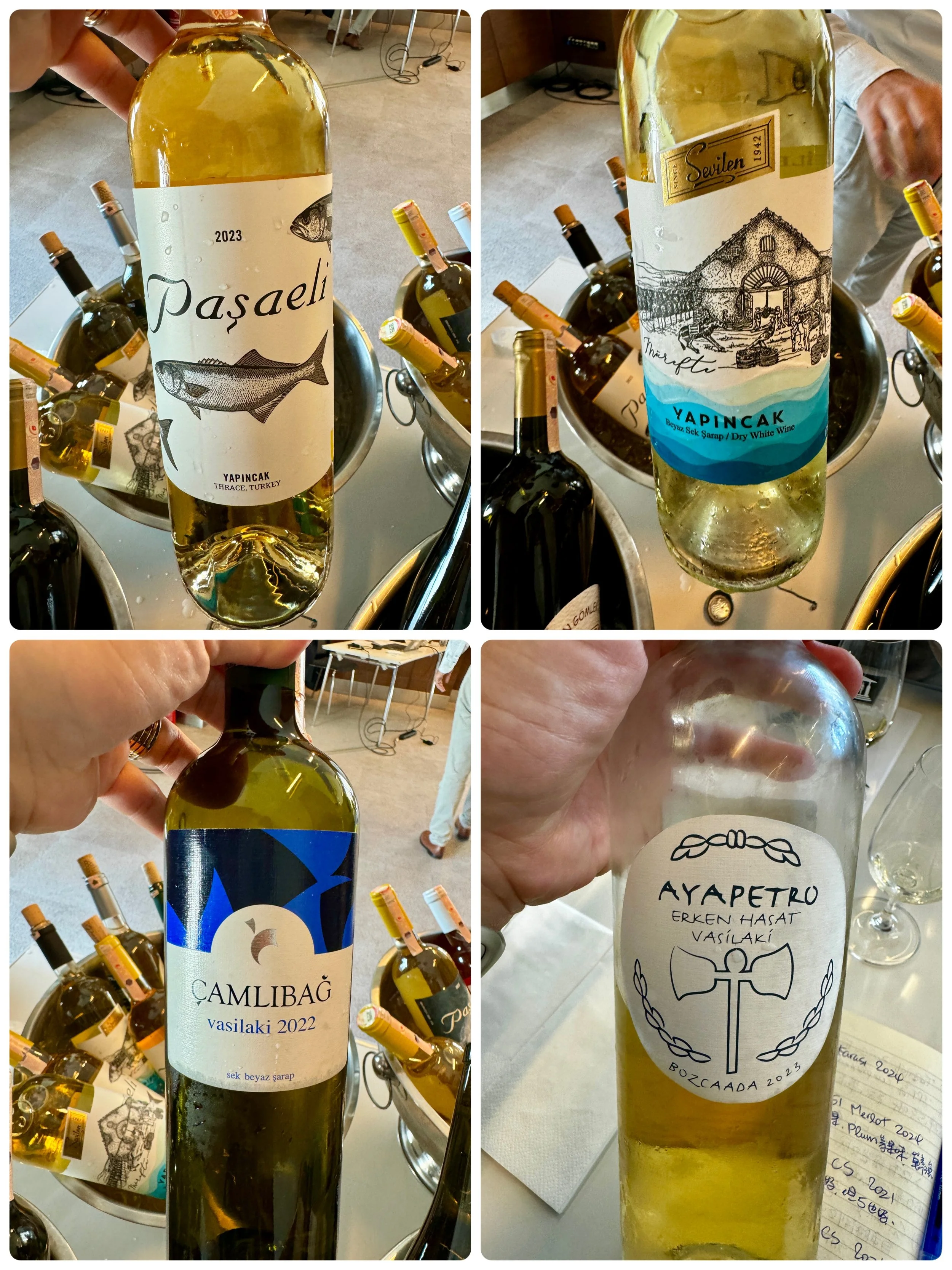 教授準備的18款葡萄酒: Yapıncak 2023 Paşaeli、Yapıncak 2022 Sevilen、Vasilaki 2023 Çamlıbağ Erken Hasat、Vasilaki 2022 Çamlıbağ、Paşaeli Sıdalan 2023、Paşaeli 2022 Kolorko、Paşaeli 2022 Çakal old vines、Sultaniye Delta V. 2022 Heraki、Sultaniye Akuarela Heraki 2022、Vinkara Hasandede 2023、Ketengömlek 2023 Gelveri Küp Şarap、Likya Işı 2022 Likya、Göküzüm Tasheli 2023、Gök Heraki 2023 Göküzüm、Selefkıa Aküzüm 2021 、Yaban Kolektif Sungurlu Ayağıbüyük 2023 、Mazrona 2022 Shiluh Şarap Mazrone、Meso Potamio 2022 Shiluh Şarap Kerküş 。