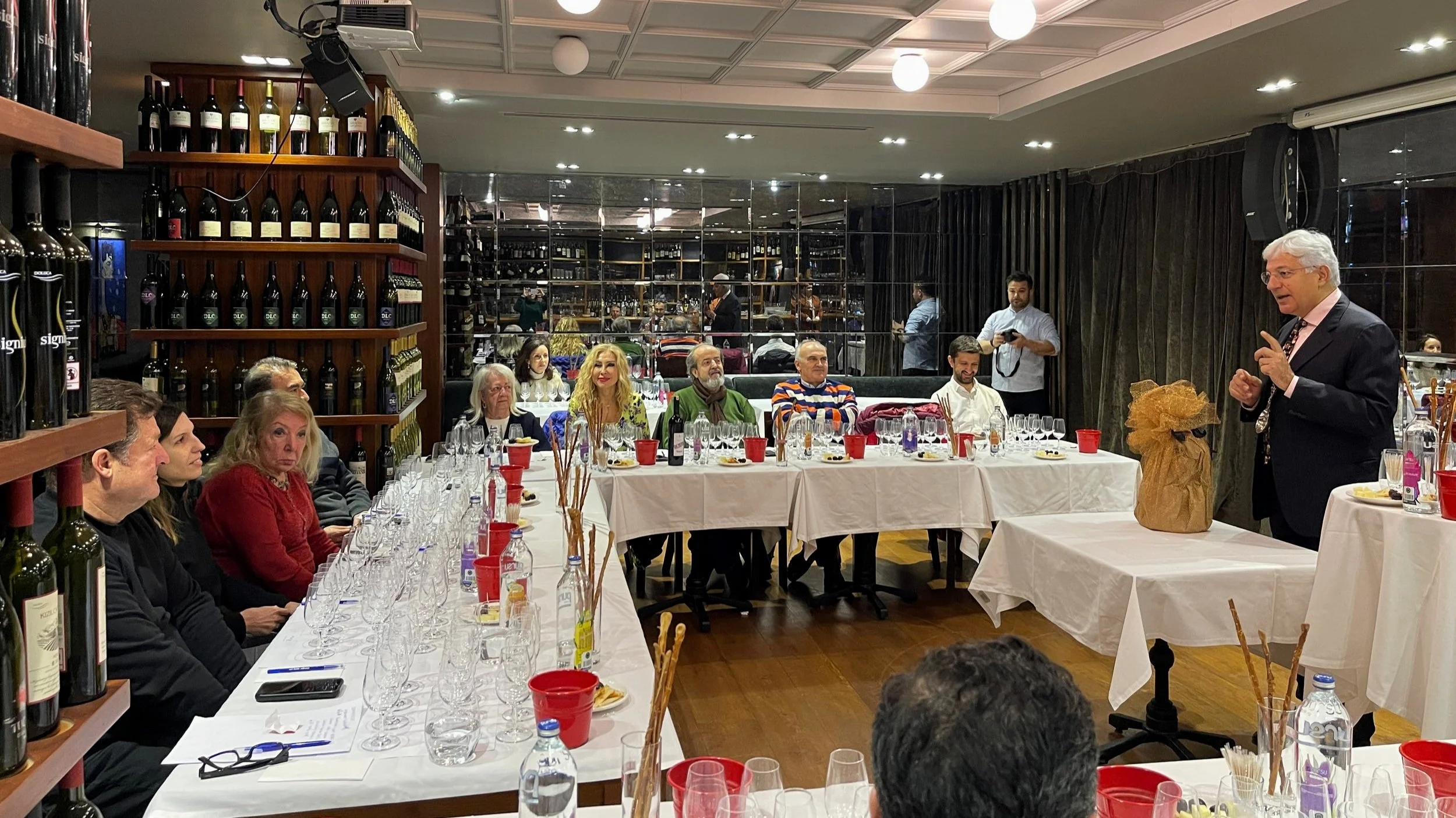 伊斯坦堡Gusto葡萄酒品酒會,固定每月第三星期四舉辦品酒會,本月主題是”陳年土耳其葡萄酒”,Mehmet Yalcin會長這次採盲飲方式進行,共計 13 款 1987 年至 2015 年期間的土耳其葡萄酒。 缺少競爭的緣故,2000年以前好的土耳其葡萄酒較少,甚至有些葡萄酒的橡木塞品質不佳,超過10年酒齡的好酒難覓。 於是,我很期待瓶中物的風味。