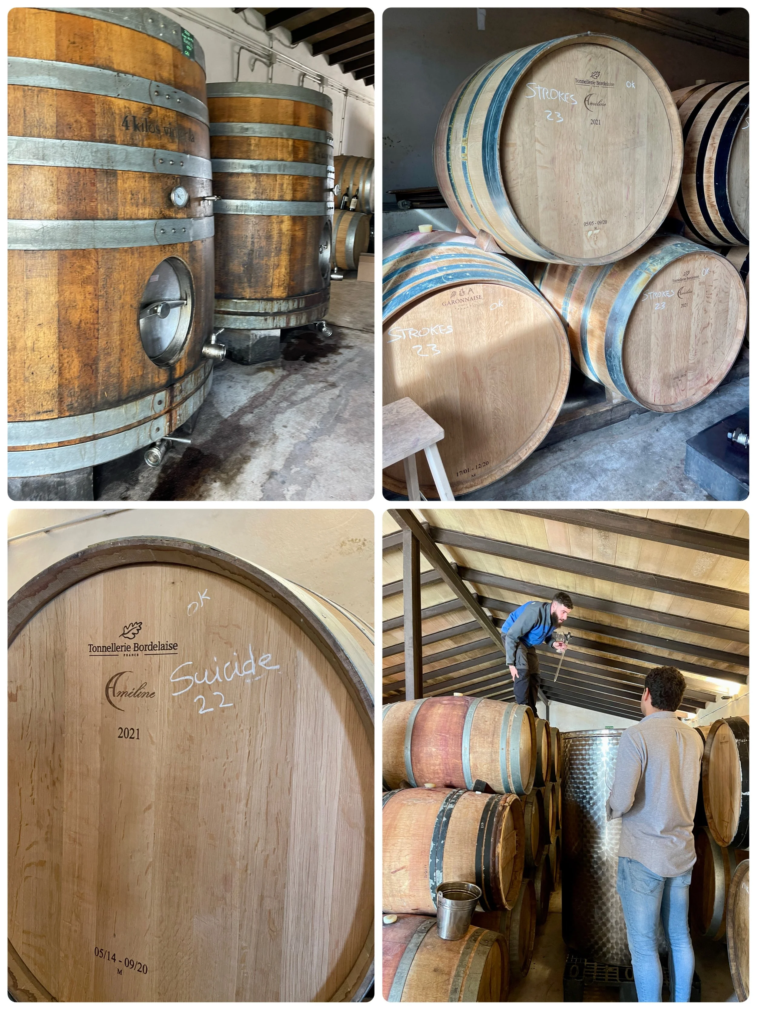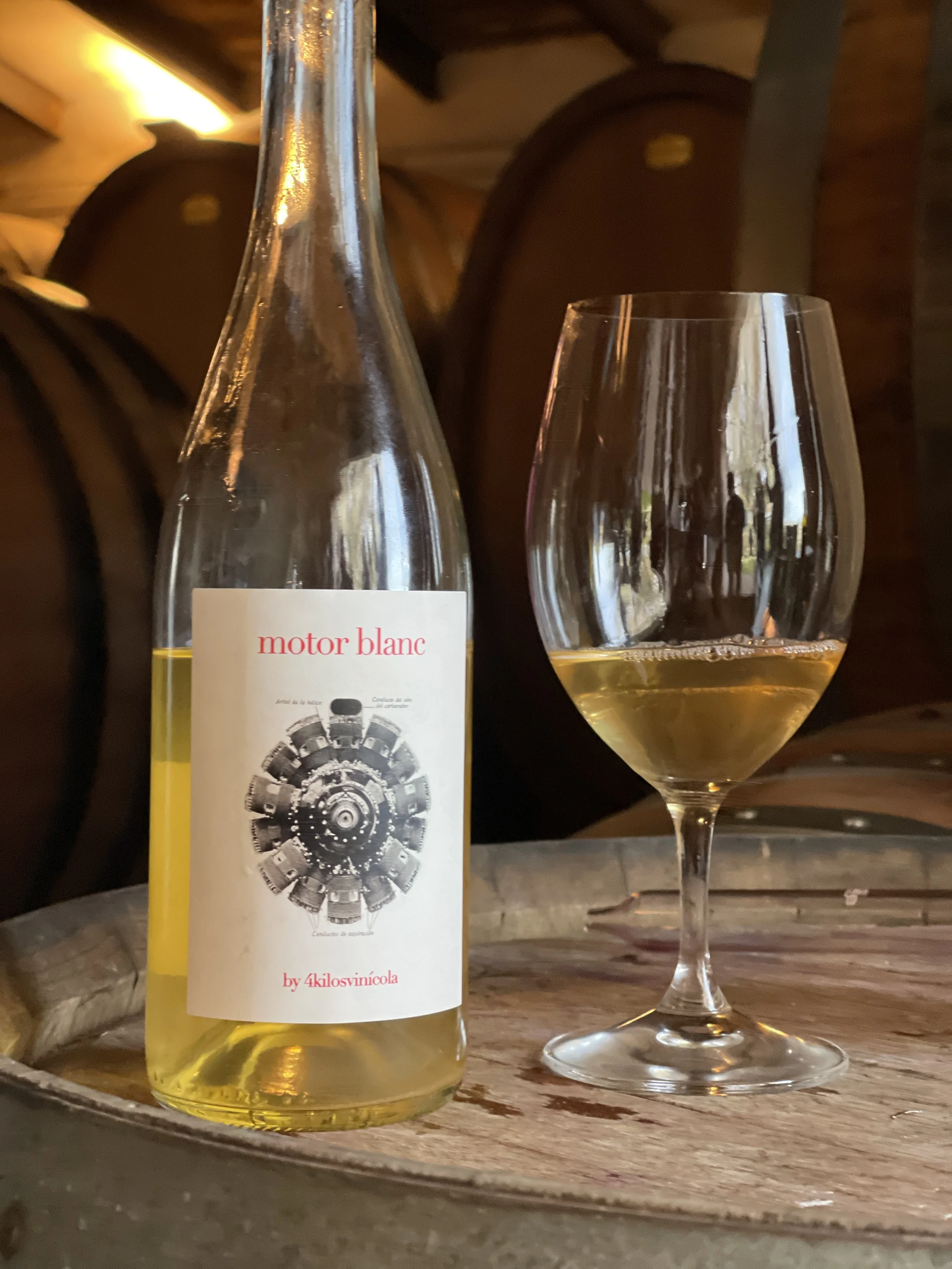 Toni帶我們到橡木桶邊做試飲,他爬上爬下讓我們品嘗Syrah、Callet、Suicide、Strok等葡萄酒,還有三款瓶裝酒Motor Blanc 2022、12 Volts 2022、Motor Callet 2022,完整品嘗4 Kilos葡萄酒風味。 酒標設計獨特前衛,而酒的名稱卻很嚇人,比如說: 自殺、中風、12伏特、馬達,我特別欣賞無硫的馬達Callet葡萄酒,自然純淨多果風味,是風格獨具的自然酒。