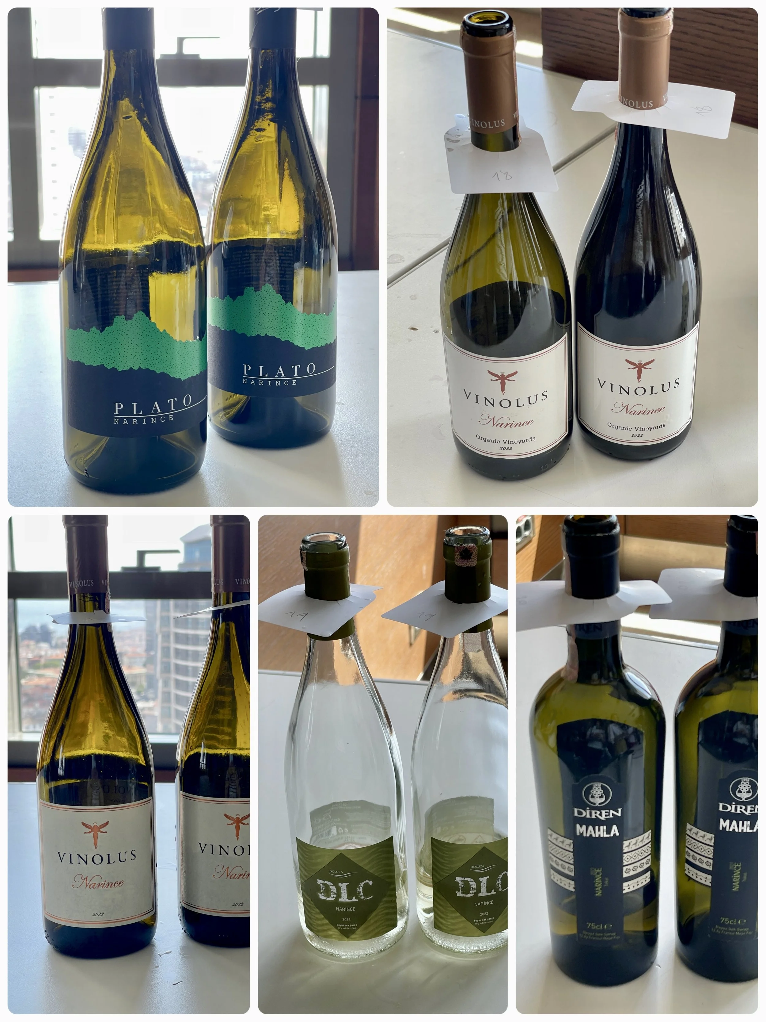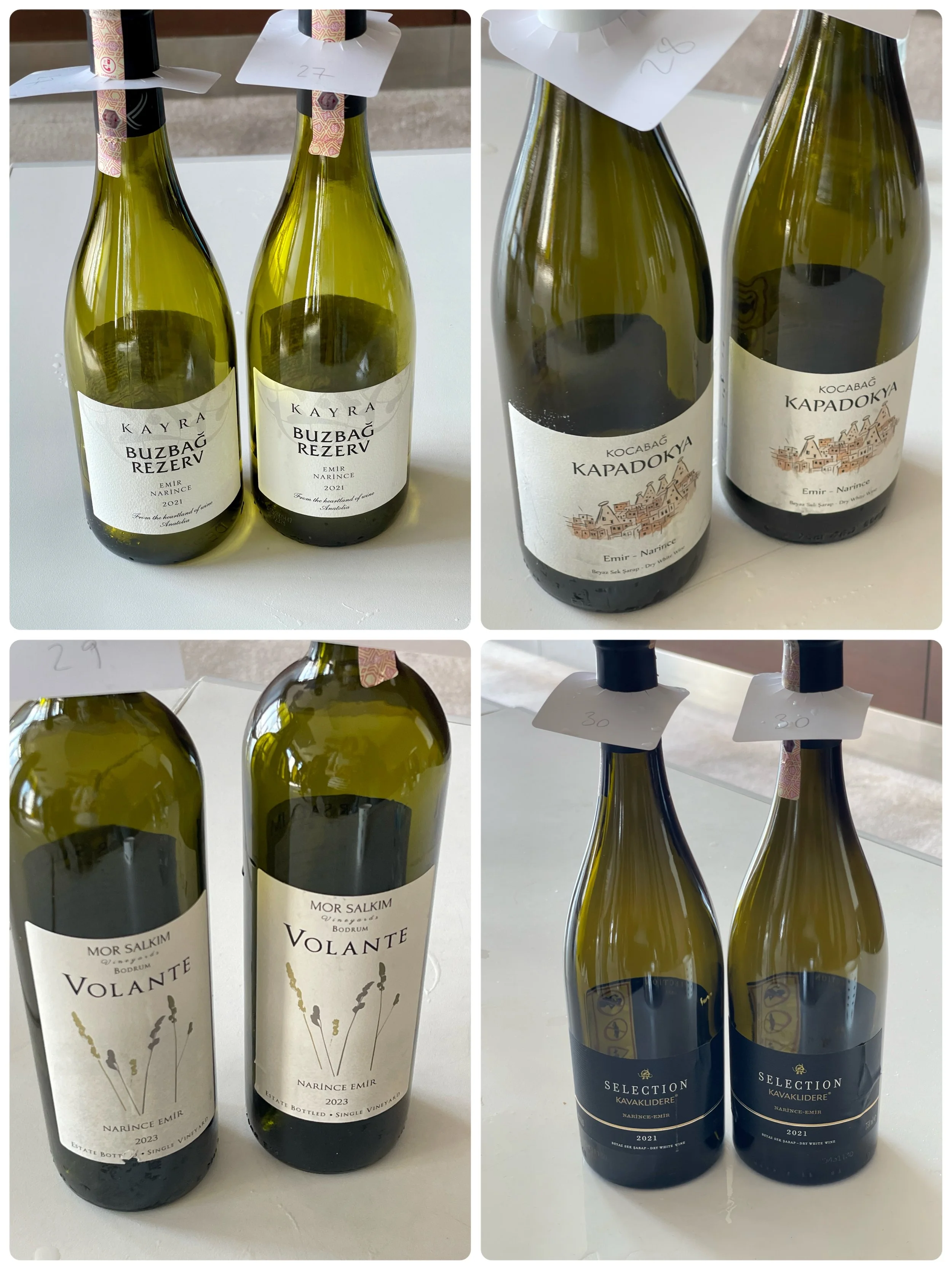 經過26酒款品嘗,剩下最後4款混釀酒, 大概在室內放太久而不夠冰涼,感覺這4瓶葡萄酒溫度略高,口感有點不集中。 許多酒莊拿Narince跟Emir混釀,因為二者能夠截長補短,不可否認,好的葡萄拿去釀單種葡萄酒,條件差些的葡萄做成混釀,讓葡萄使用極大化。 以下是4款混釀酒款。