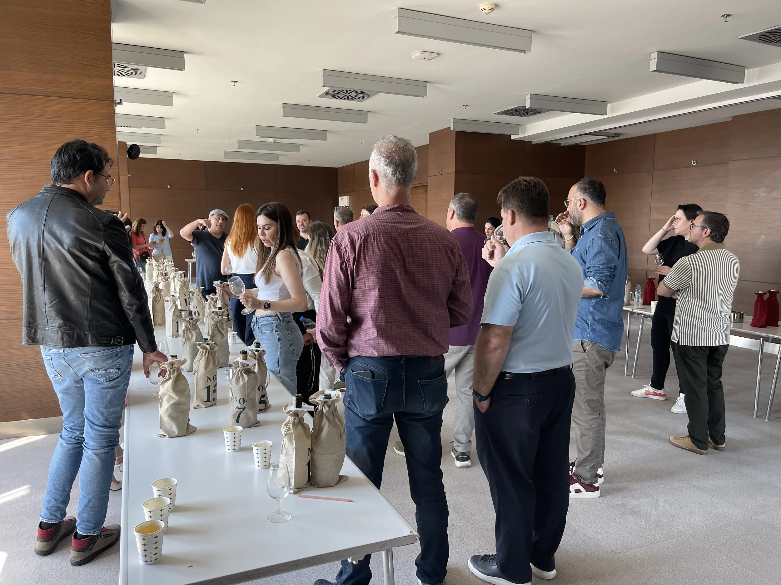 土耳其葡萄酒專家協會舉辦品酒活動,主題是Emir和Narince土耳其原生葡萄酒,吸引會員30多人參加。 月初Gusto Bar葡萄酒展被取消,原因是沒拿到許可,忽然間品酩客找不到品酒機會,這次我滿心期待。 會長準備30款葡萄酒,來自19家酒莊,11瓶Emir葡萄酒,15瓶Narince葡萄酒,4瓶Emir與Narince混釀,全是一時之選。 採盲飲方式進行,葡萄酒用布袋包起來打上編號,會長提供表格讓大家打分數,然後彙總評分,他讓大家不要聊天交流,專心打分數之。