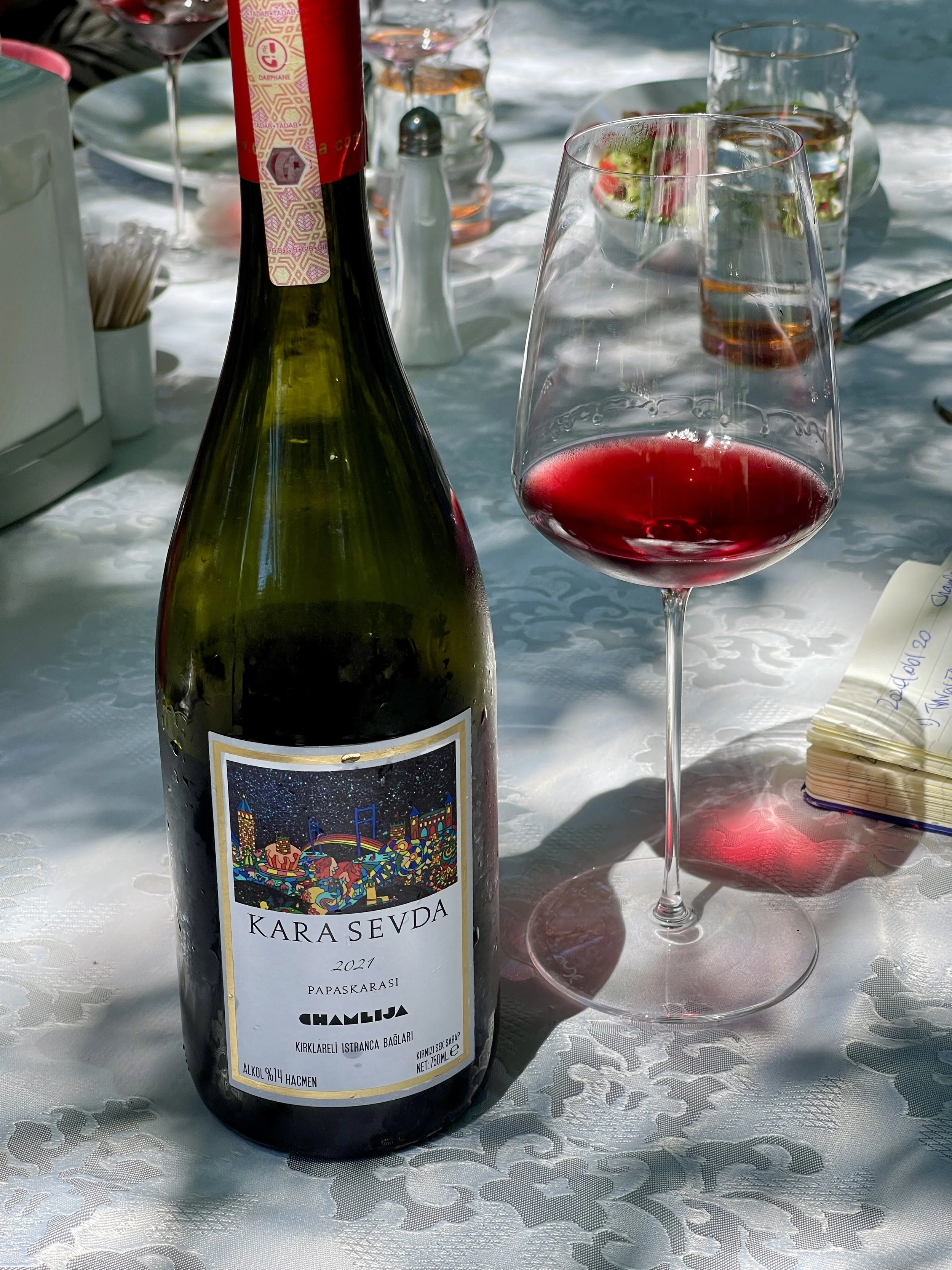 風土決定葡萄酒風味,每個年份風味不盡相同,這是葡萄酒迷人的地方,能辨識差別更是酒迷們的樂趣。 定期拜訪Chamilja酒莊,品嘗新裝瓶葡萄酒,與莊主共飲聊酒經,乃是一大樂事。 這次,莊主準備新裝葡萄酒和2021年紅葡萄酒,在餐廳草地開飲,沒有精緻餐點,餐廳烤肉加沙拉,純粹體驗葡萄酒風味。 莊主準備24種酒款,各有千秋,經過馬拉松式品嘗2021年份紅葡萄酒,我們相信土耳其2021年是好年份!