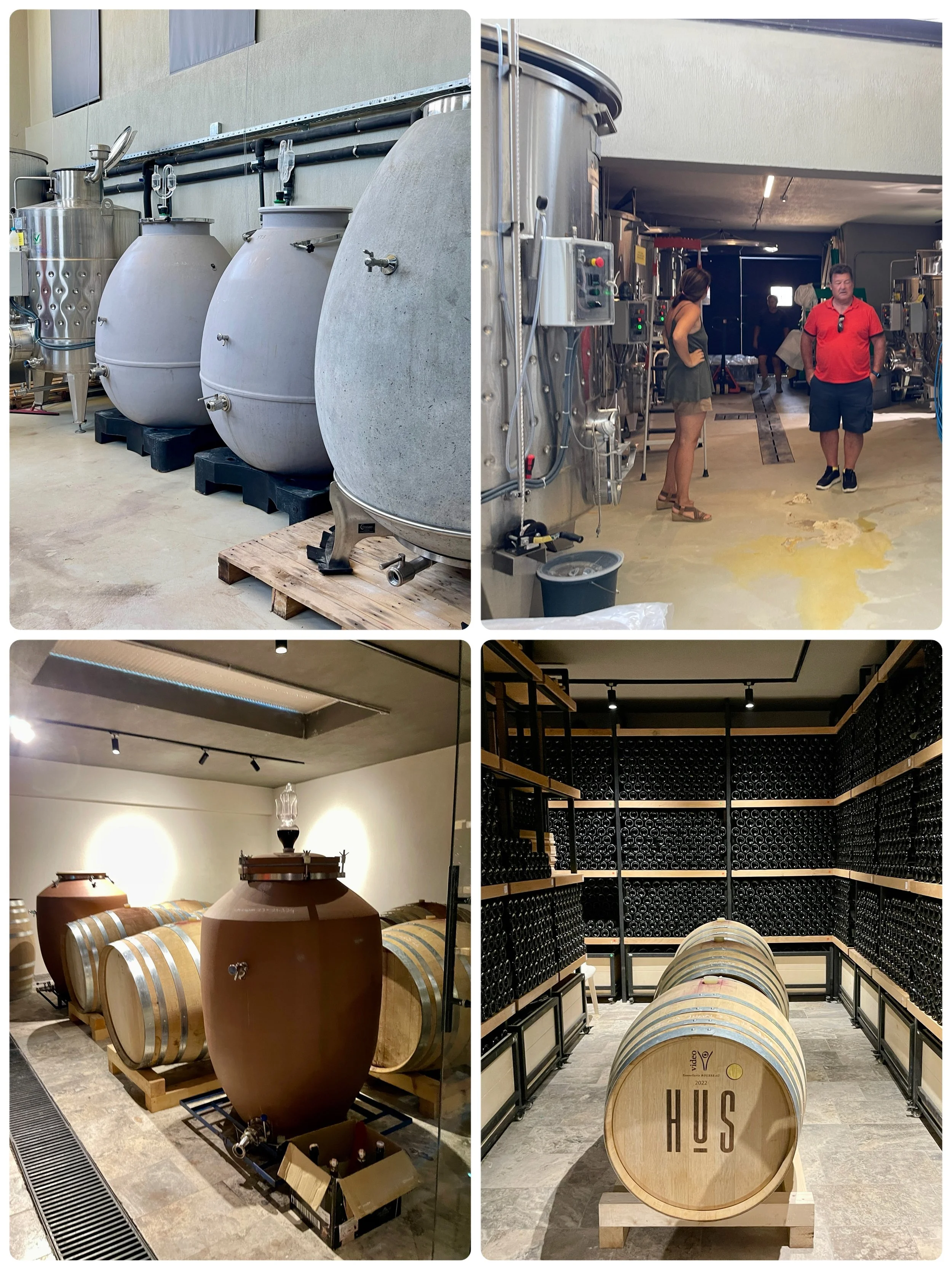 HUS酒莊有個美觀的主樓,裡面有餐廳、大露台和橄欖樹之間的座位,樓上還有 2 間舒適客房。 酒莊坐落在地勢略高位置,便於觀看周圍的葡萄園。 酒莊一直處於創新和具創造力狀態,餐廳充滿年輕時髦的氣氛,有設計感且體面,成功舉辦多場品酒會。 餐廳得到土耳其美食評鑑İNCİLİ GASTRONOMİ REHBERİ 2023 的3顆珍珠,和法國知美食評鑑GAULT & MILLAU 2024 一頂白帽,吸引許多饕客前來朝聖。 可惜拜訪當天太匆忙,沒能留下享受美食,殘念成為下次再去的動力。 莊主親切地領著我們參觀酒窖和葡萄園,以產量來看這裡是小農釀酒,年產量50%葡萄酒透過餐廳與酒莊銷售,其他50%則銷到其他城市餐廳與葡萄酒專賣店。 這次拜訪讓我更了解HUS酒莊,收穫匪淺,感謝莊主Ceylan誠摯的接待。