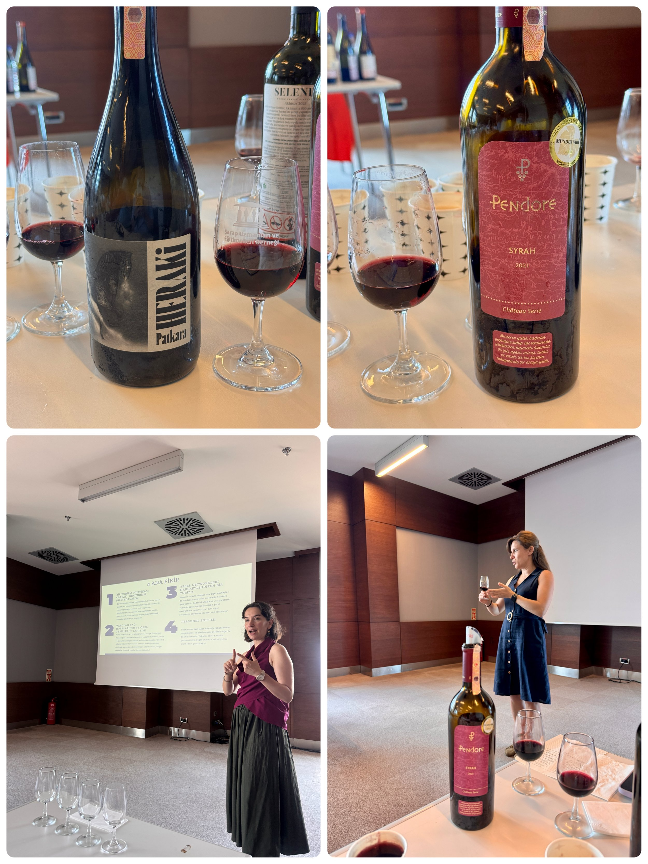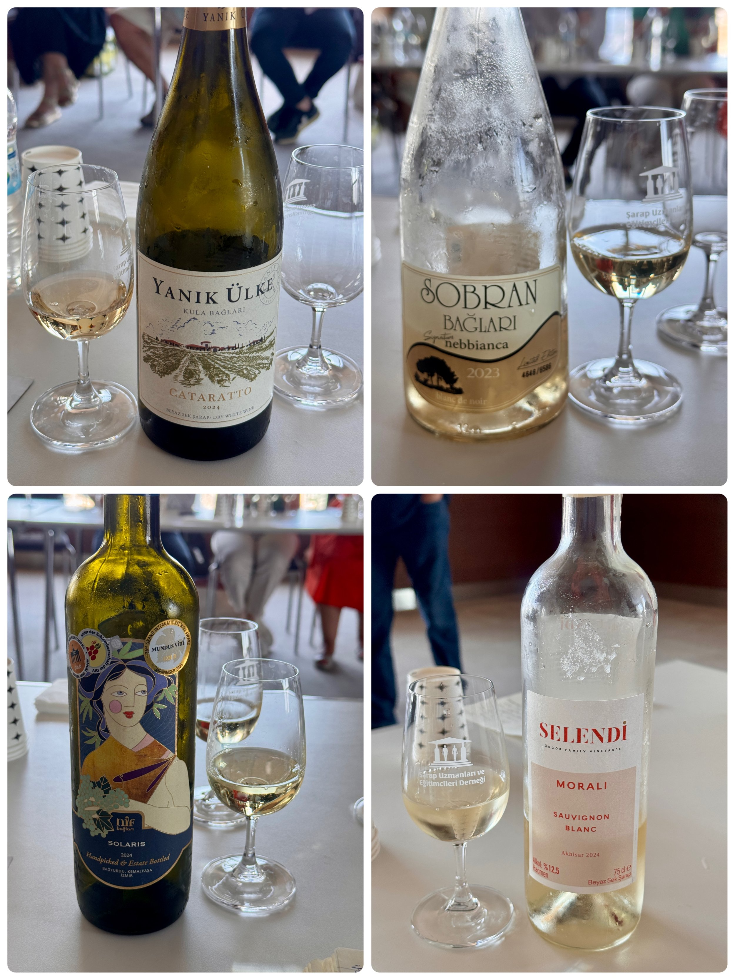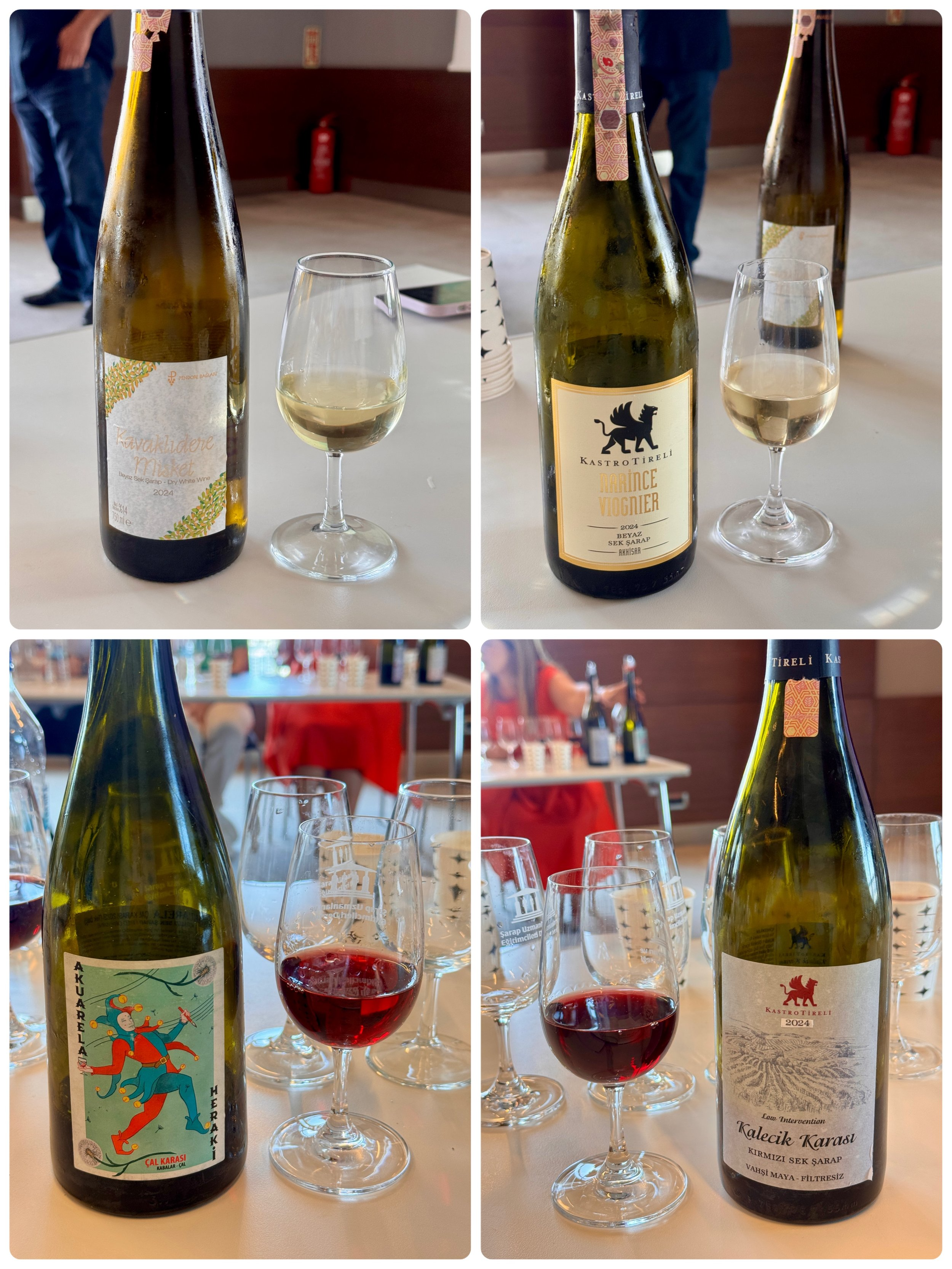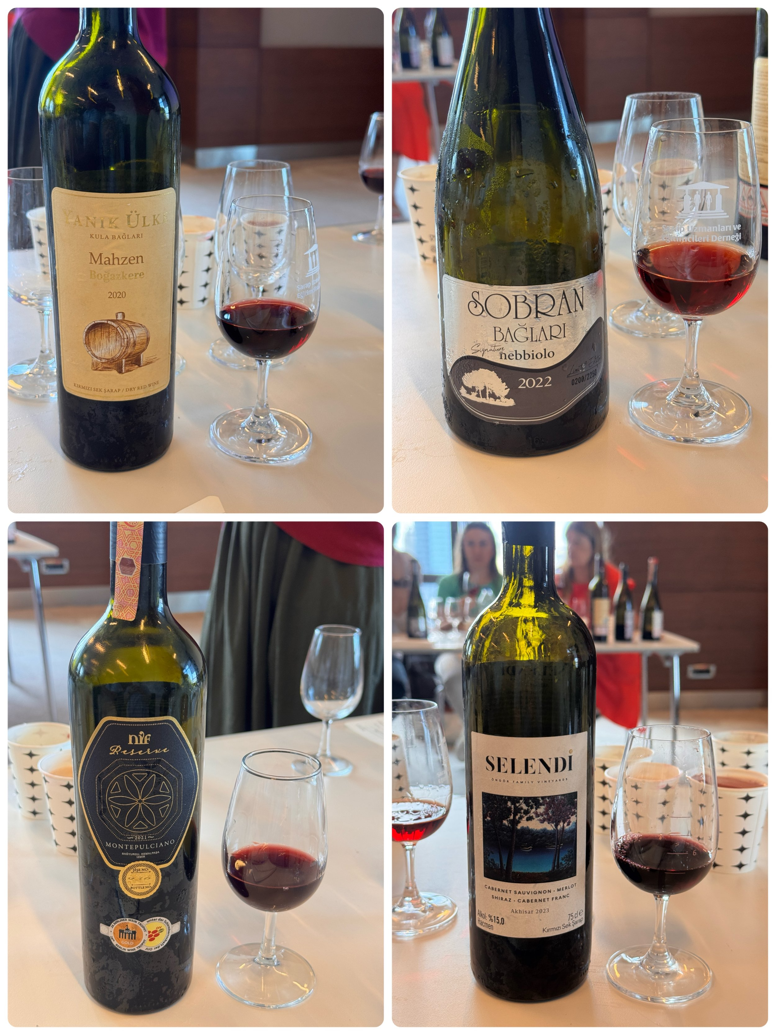 品嘗6款白葡萄酒和8款紅葡萄酒如下: Yanık Ülke Cataratto 2024 、Sobran Nebbianca 2023、Nif Solaris 2024、Selendi Morali Sauvignon Blanc、Kavaklidere Misket 2024、Kastro Tireli Narine Viognier 2024、Heraki Çal Karası 2023、Kastro Tireli Kalecik Karası 2024、Yanık Ülke Mahzen Boğazkere 2020、Sobran Nebbiolo 2022、Nif Montepulciano Reserve 2021、Selendi Cabernet Sauvignon, Merlot, Shiraz, Cabernet Franc 2023、Kavaklıdere Pendore Syrah 2021、Heraki Patkara 2024。 白葡萄酒裡印象深刻的是Nif Solaris 2024和Kavaklidere Misket 2024,這二酒款的葡萄香氣強些、均衡、酒體佳。 紅葡萄酒裡最喜歡Kavaklıdere Pendore Syrah 2021,果香、單寧、酸度都到位,是款好的葡萄酒。