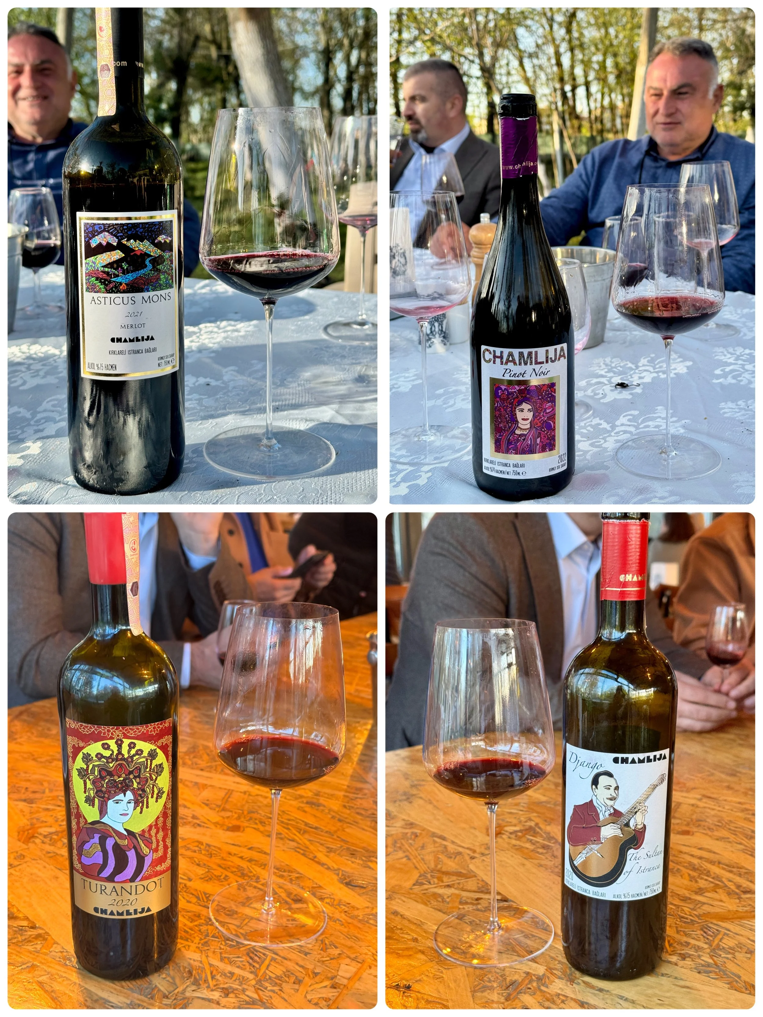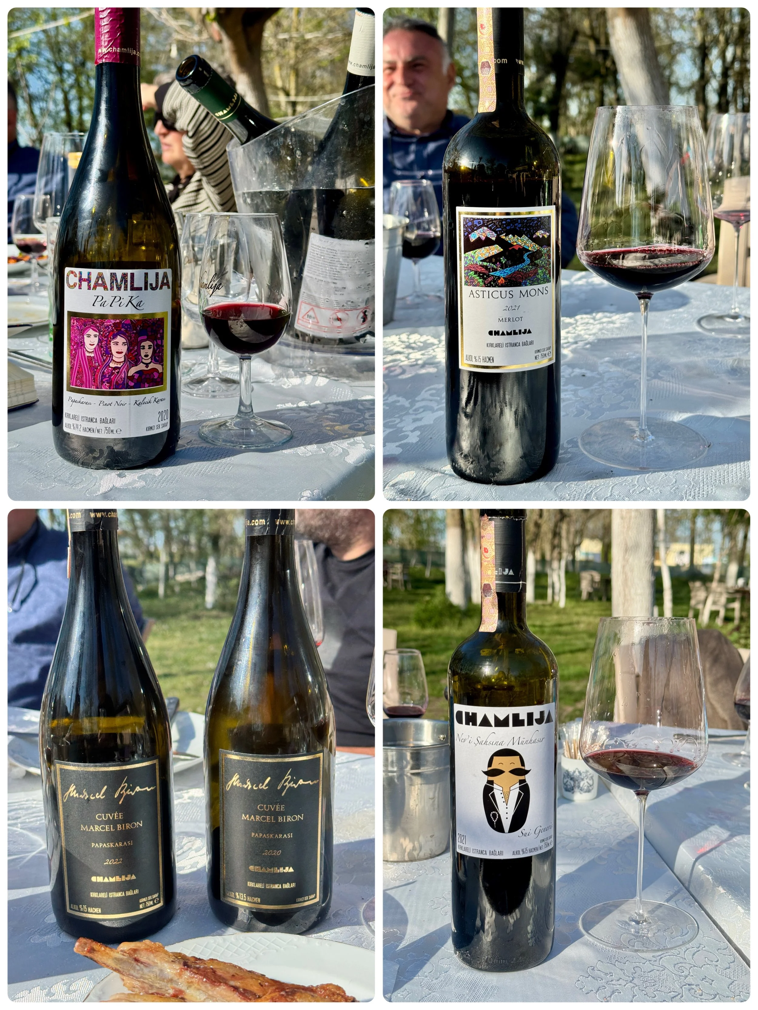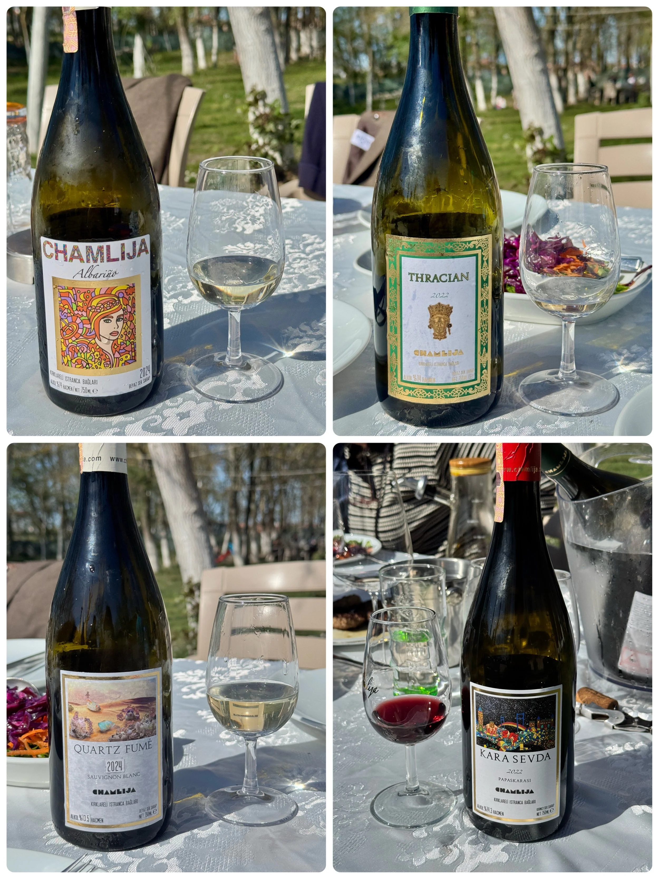 酒單如下: Albarino 2024、Quartz Fume 2024、Thracian Chardonnay 2022、Kara Sevda Papaskarasi 2022、PaPiKa 2020、Marcel Biron Papaskarasi 2022、Marcel Biron Papaskarsi 2020、Istranca Gelini 2021、Nev’I Sahsina Munhasir 2021、Asticus Mons Merlot 2021、Pinot Noir 2022、Django 2020、Turando 2020。