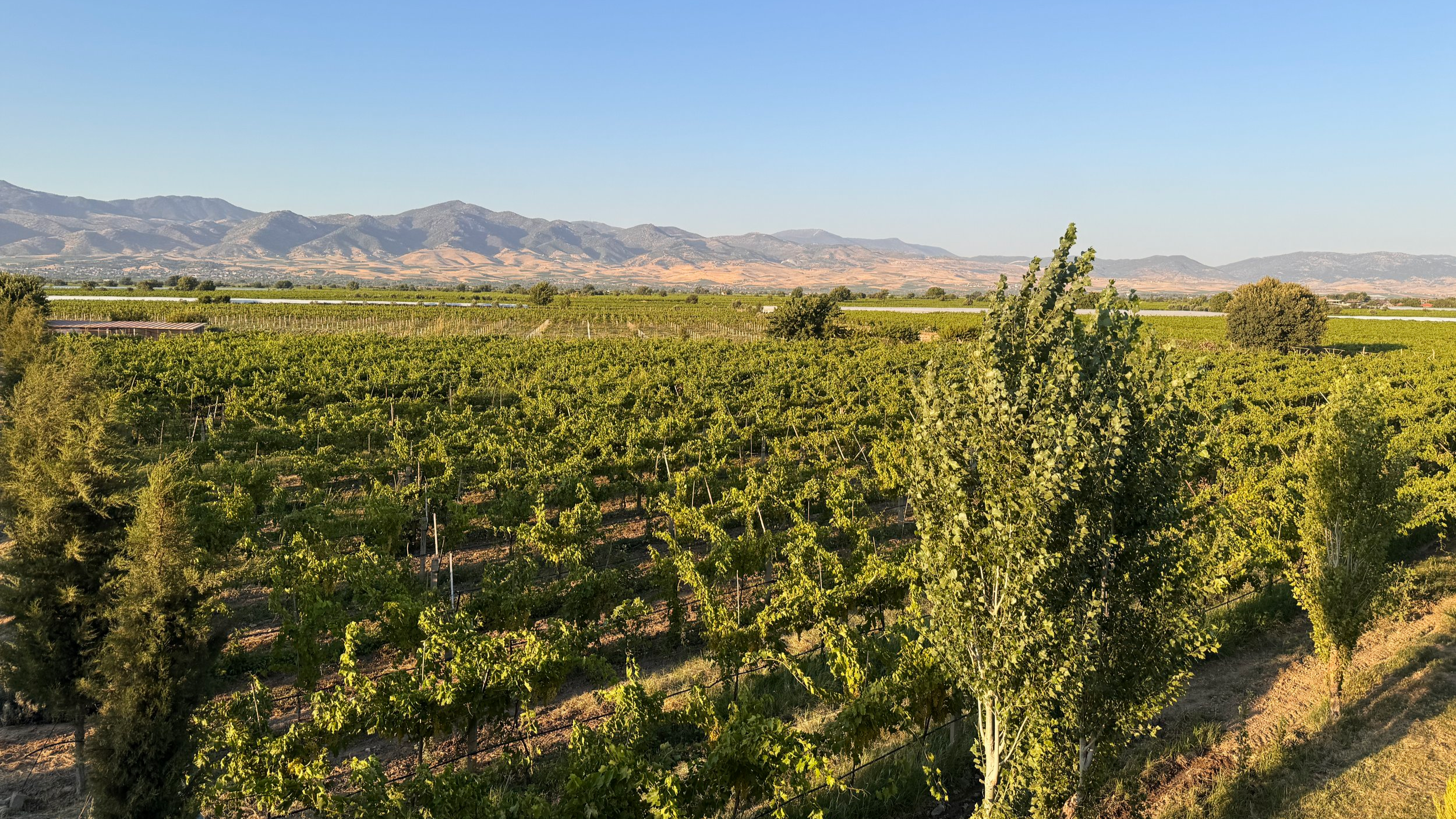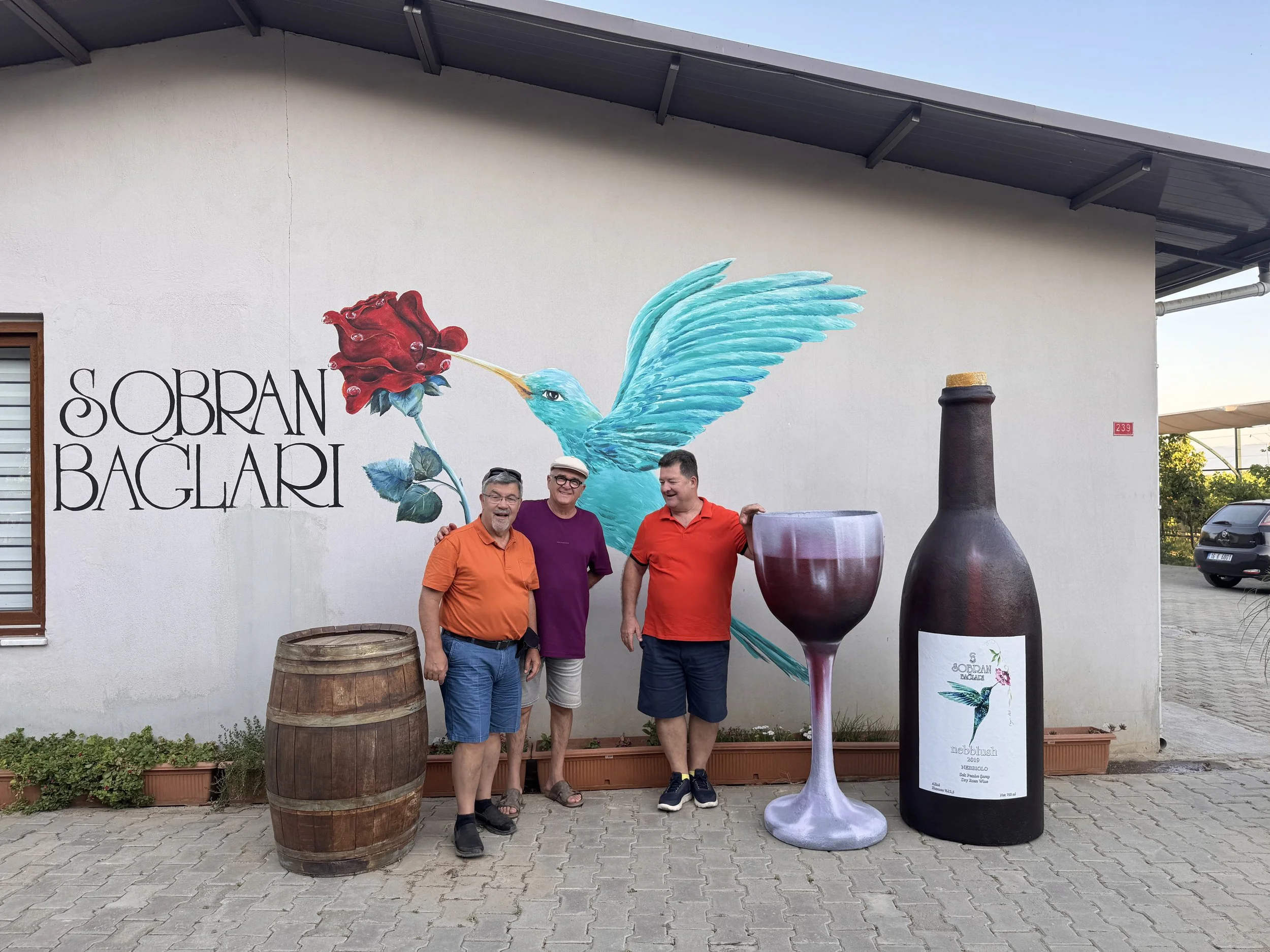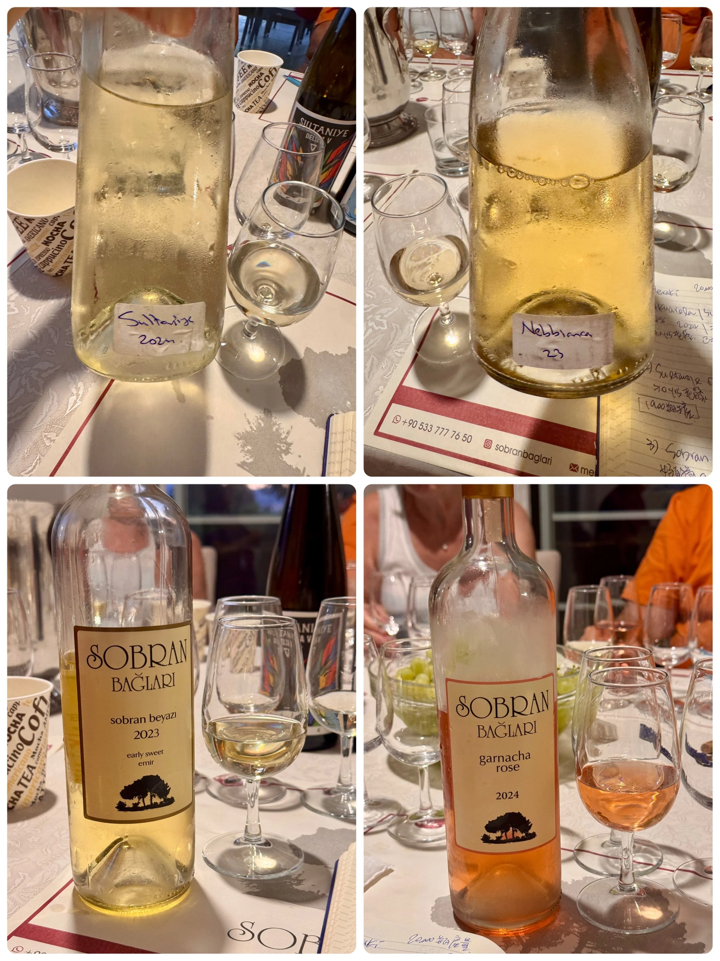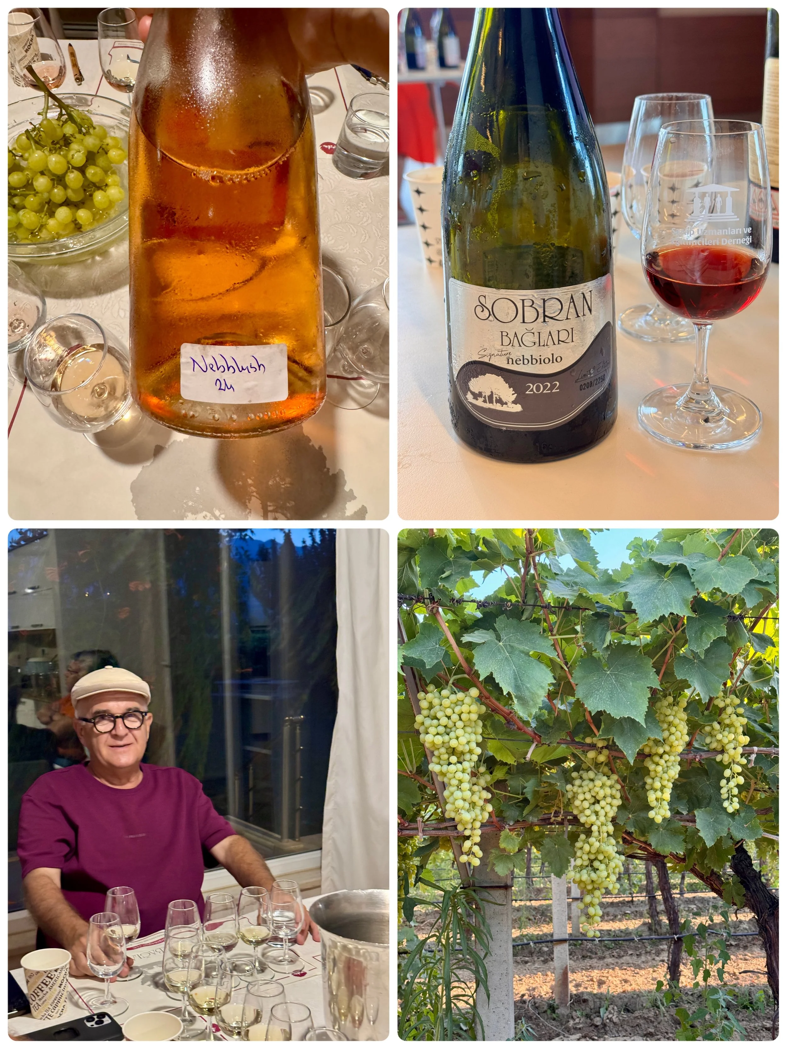 酒莊位於土耳其愛琴海產區的Alaşehir,屬於利底亞(Lydia)古葡萄園之路沿線,以歷史悠久的葡萄種植傳統聞名。家族經營的小型精品酒莊,2012年開始種植葡萄,現已擴展至29.6公頃,種植多種國際和本土品種。 土耳其首家Nebbiolo釀造者,2018年推出第一年份,將義大利經典品種與土耳其愛琴海風土結合,展現了酒莊的創新膽識。 除Nebbiolo外,還種植Cabernet Sauvignon、Merlot、Shiraz及土耳其特色品種如Öküzgözü和Boğazkere,形成多元產品線。 我們驅車前去Sobran Bağları酒莊,傍晚到達,跟Ercan一起走逛葡萄園後晚餐與品酒,共計6酒款,其中大多是尚未裝瓶的樣酒,筆記如下。